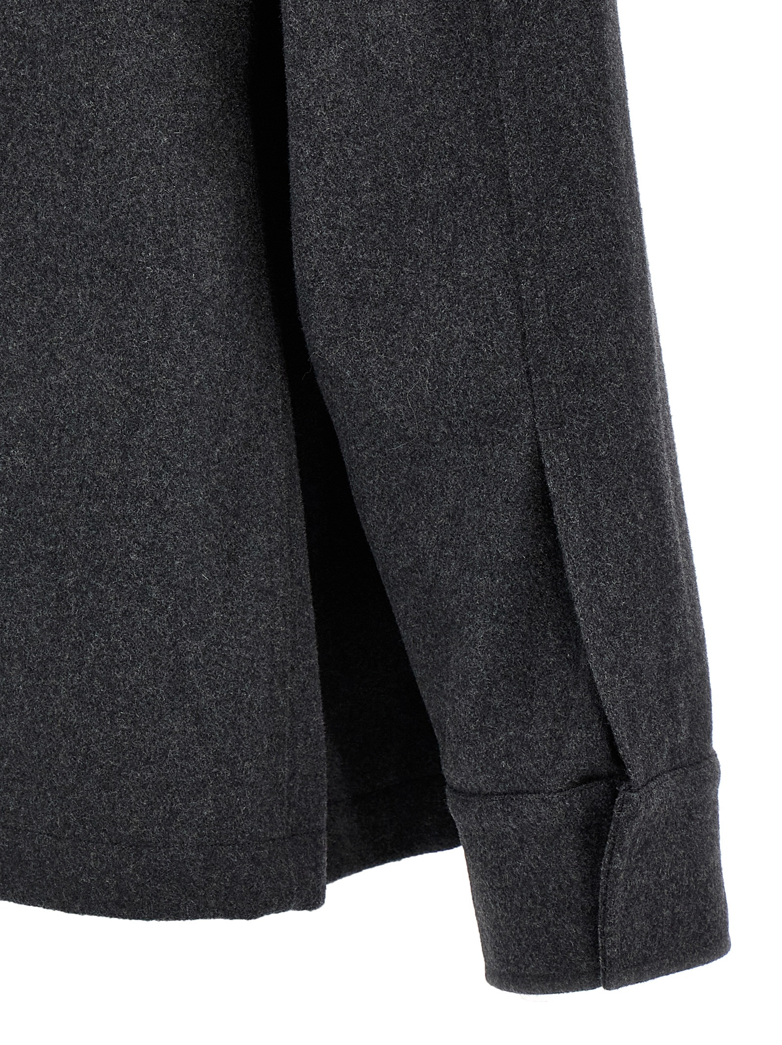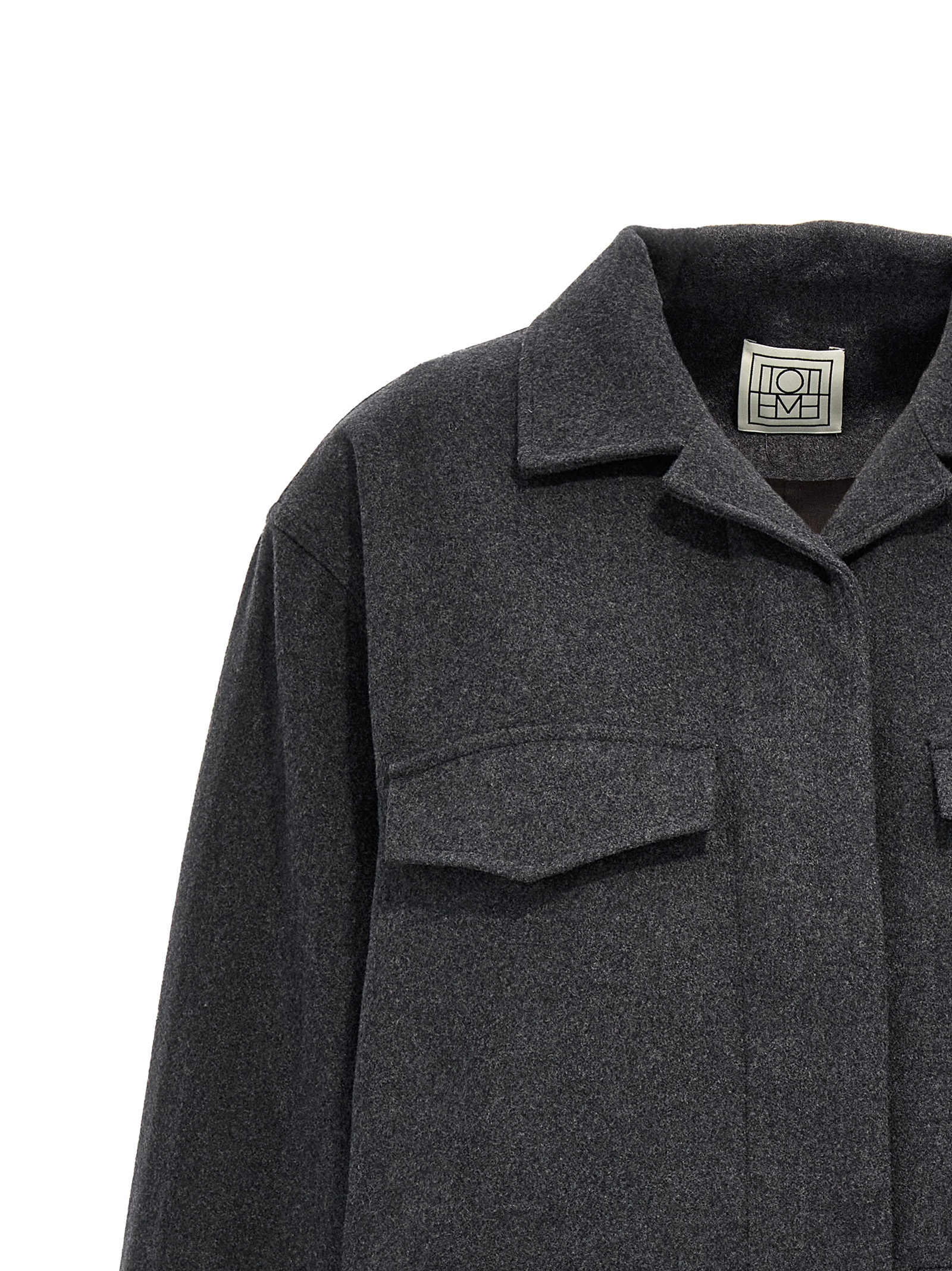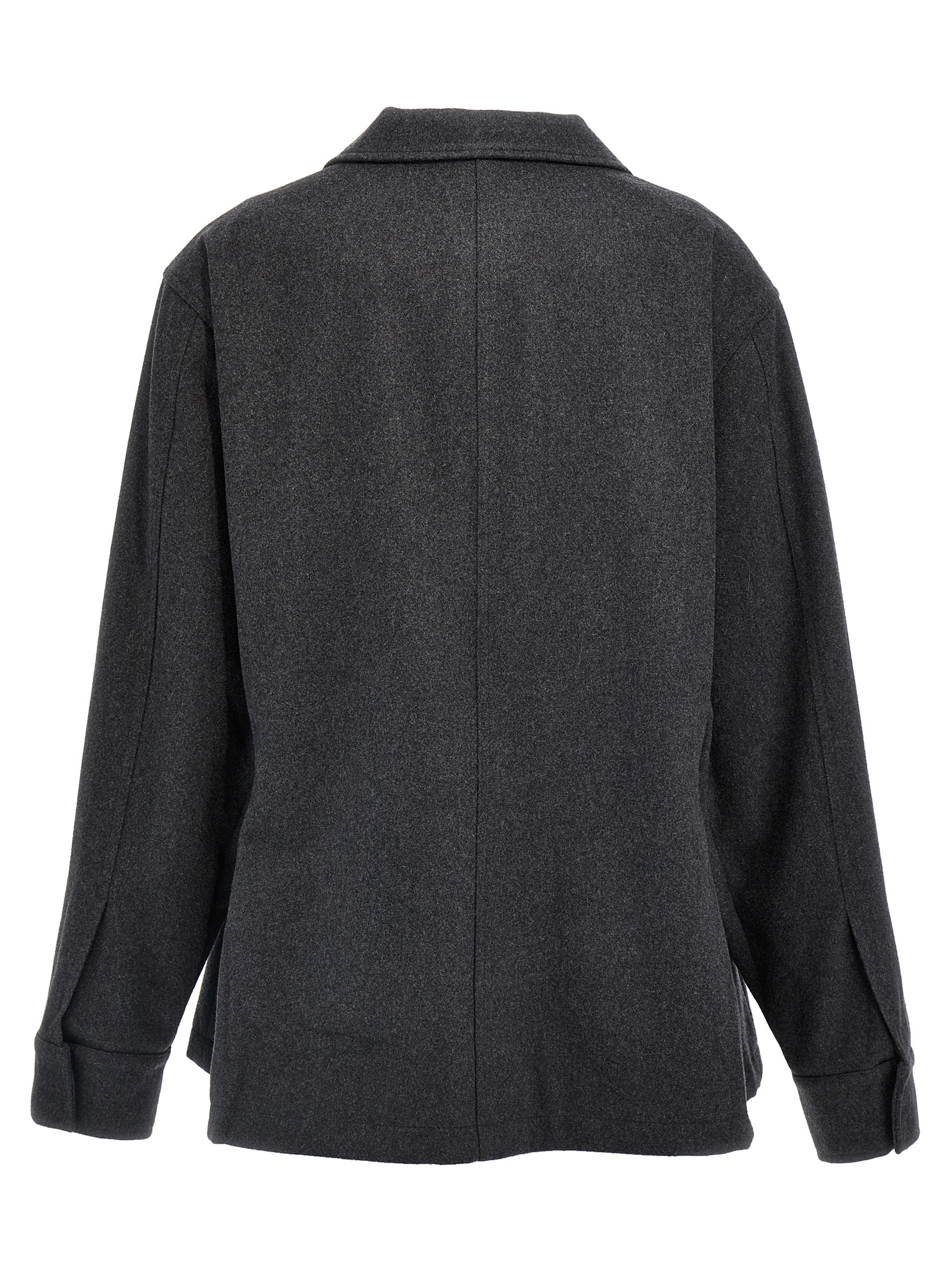 ‘Felt Cargo’ wool blend jacket with button closure, front flap pockets, long cuffed sleeves.