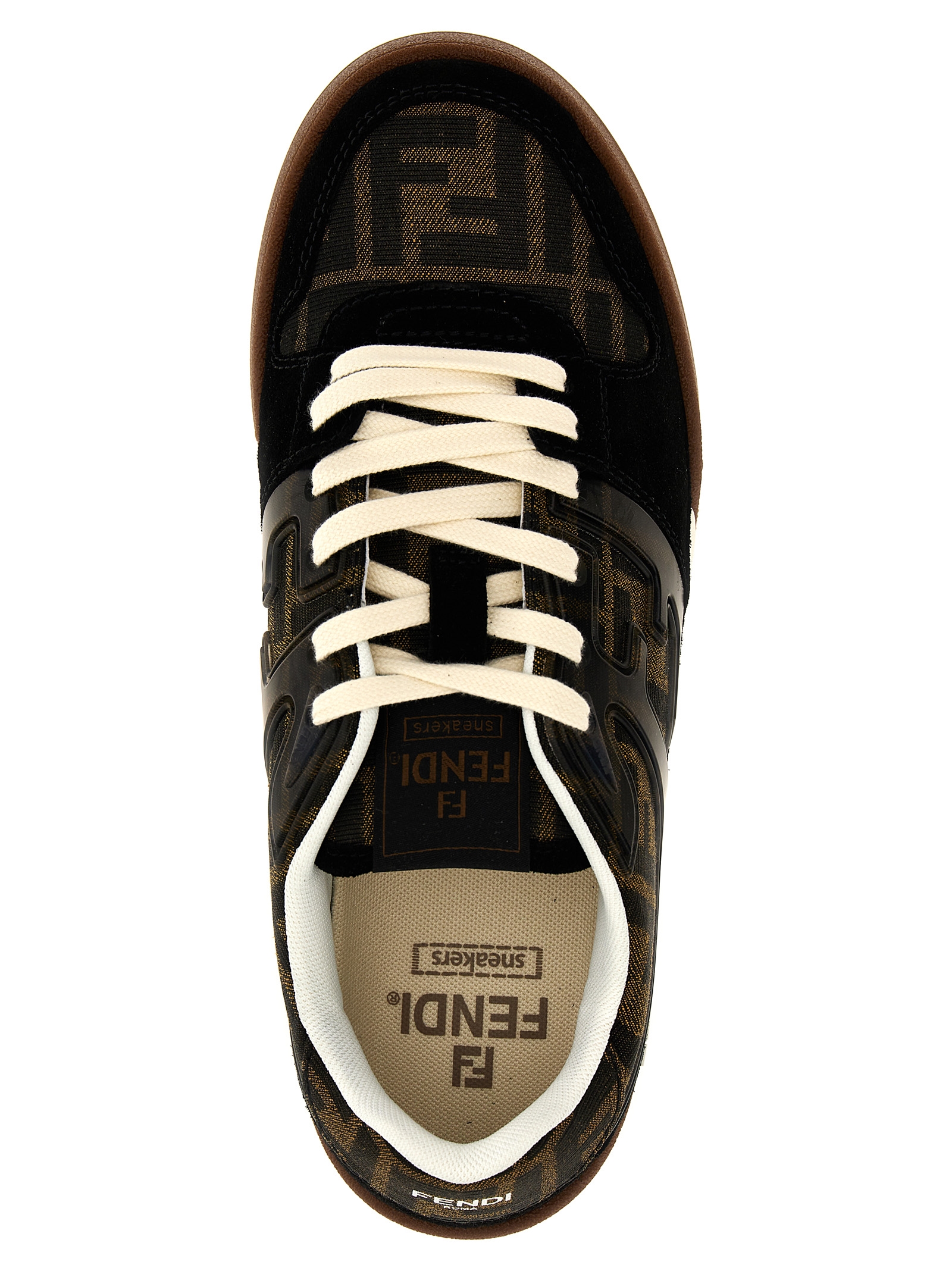 ‘Fendi Match’ sneakers in logo and suede print fabric with laces and rubber sole.