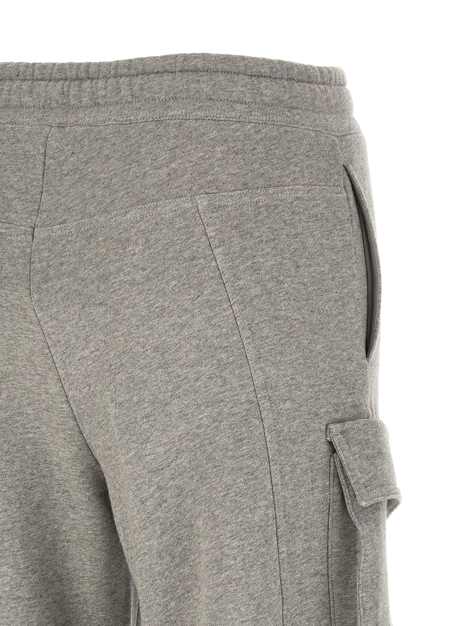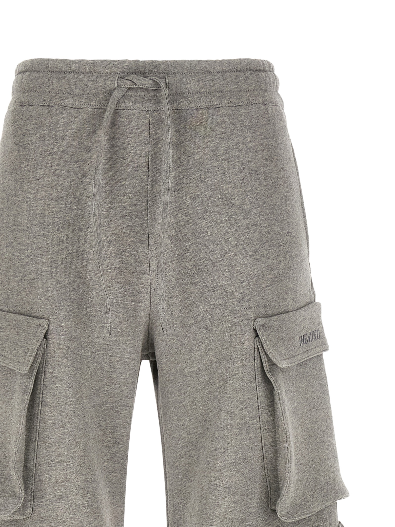 ‘Fern’ mélange sweatpants with cargo style with pockets, tone-on-tone embroidery on the front, adjustable drawstring elastic at the waist, adjustable ankle strap detail.