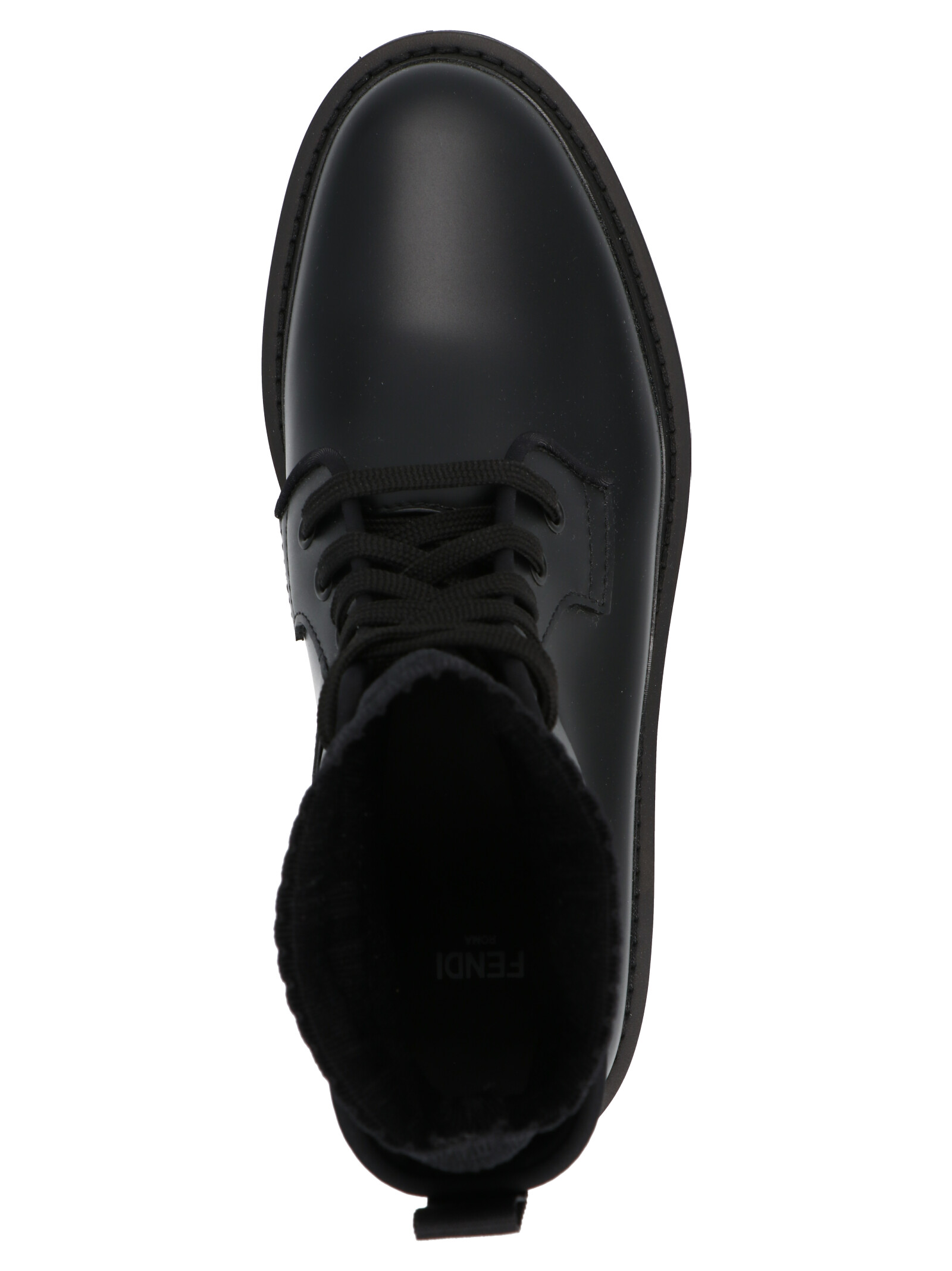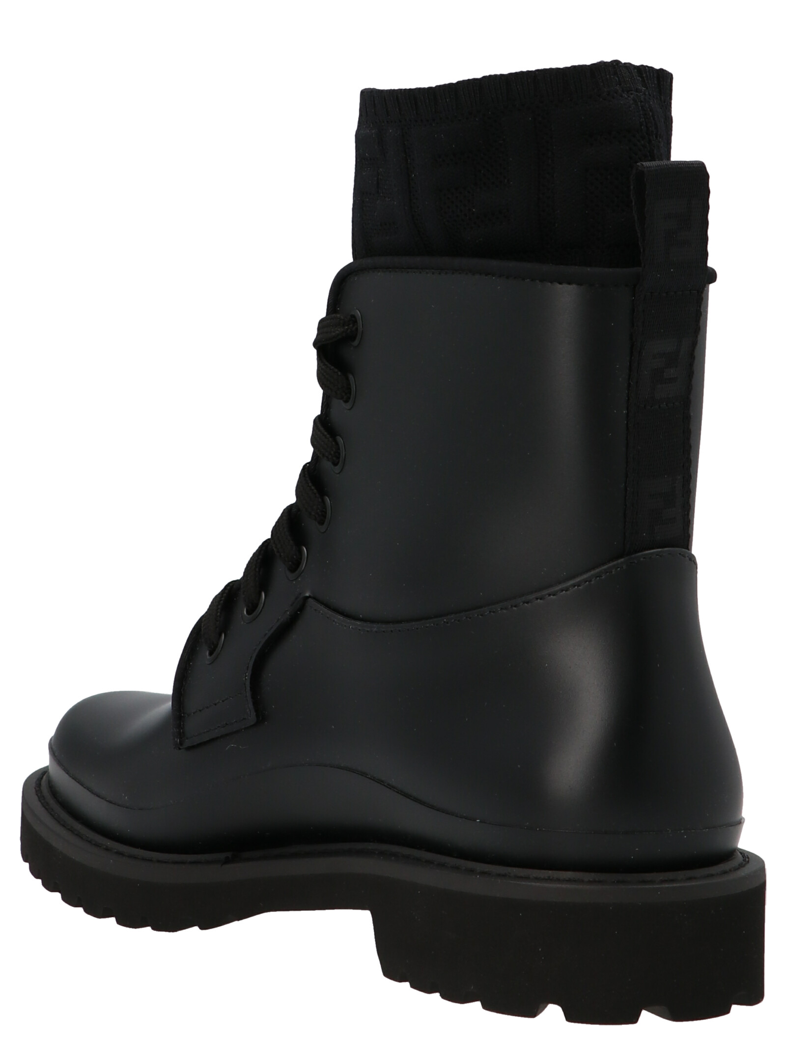 ‘FF 3D’ combat boots in PVC featuring laces and a knit detail with a logo, rounded toe cap.