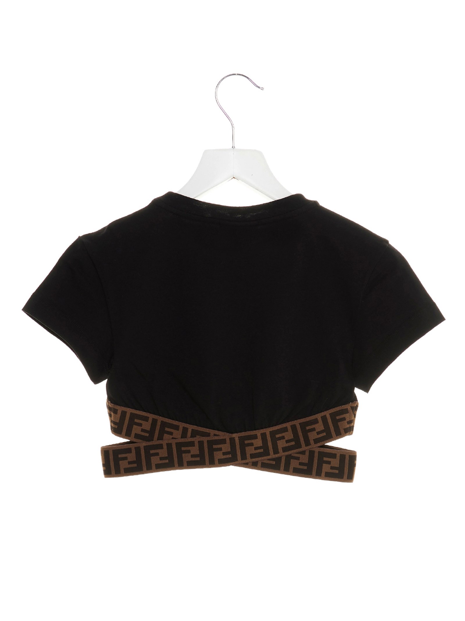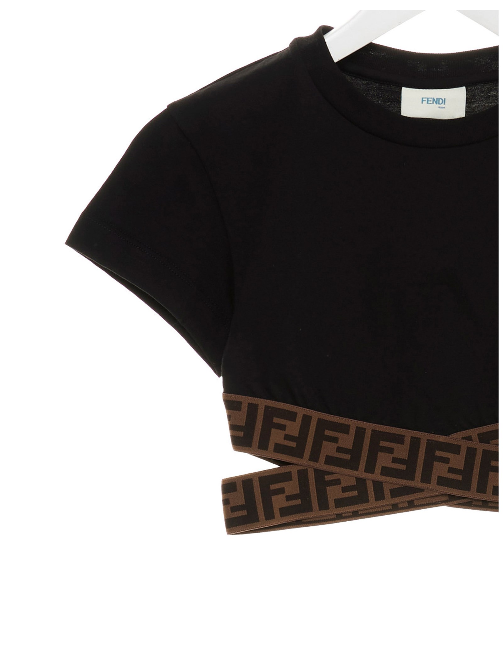 Fendi Kids cotton crewneck top with a crossed elastic logo band.