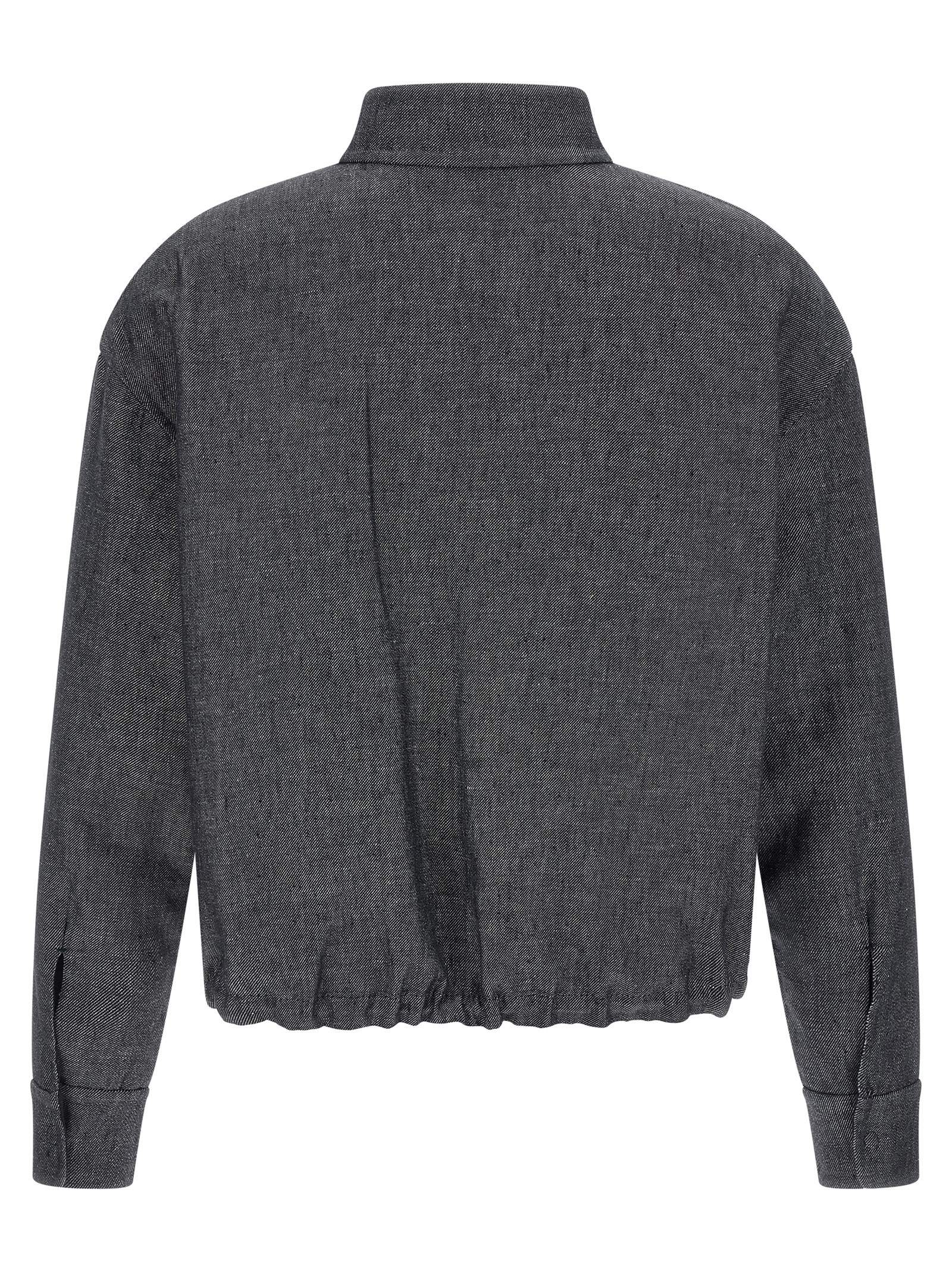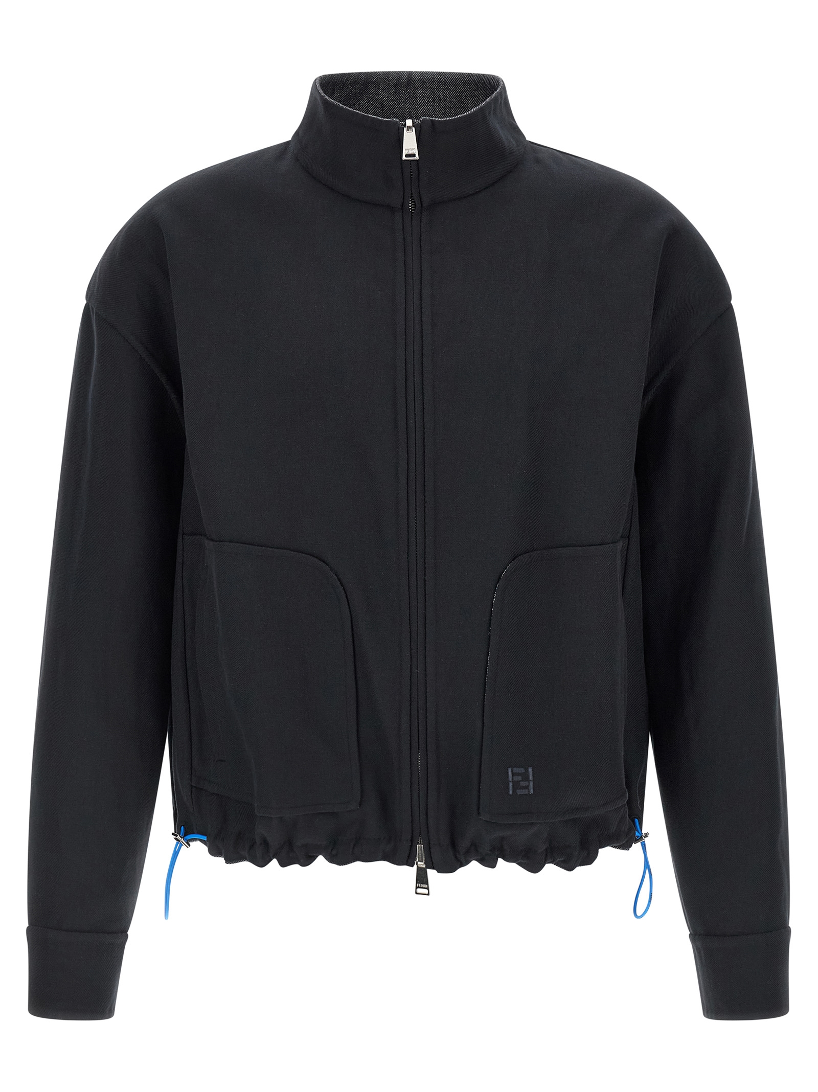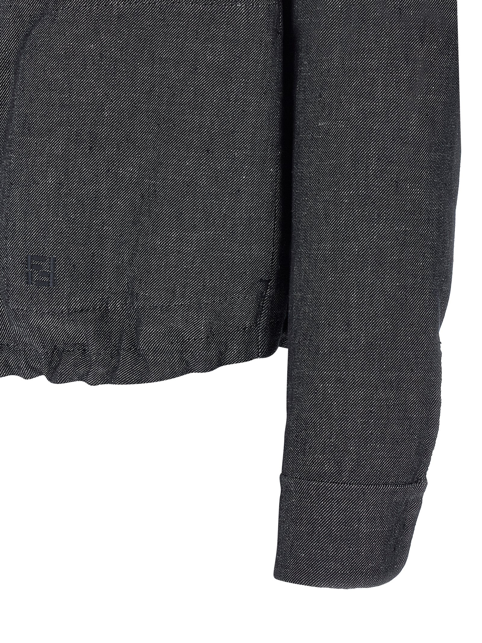 Reversible blouson in denim fabric and linen and cotton fabric, tone-on-tone ‘FF Selleria’ embroidery and front zip closure, high neck, pockets, long sleeves with cuffs and dropped shoulders, contrast drawstring on the hem.