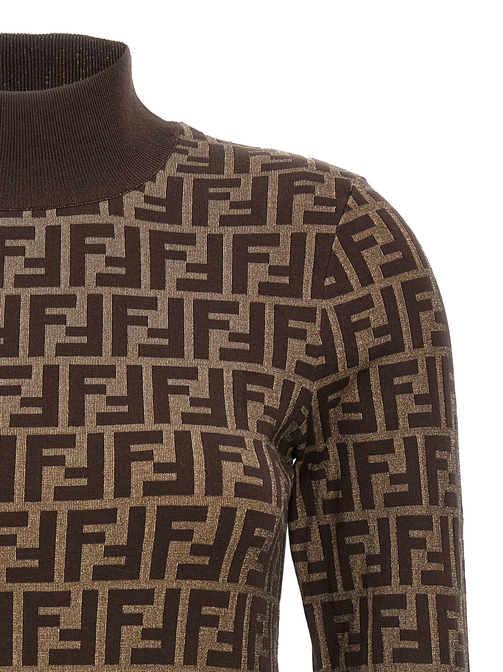 Cotton sweater with all-over ‘FF’ logo pattern, high neck, long cuffed sleeves.