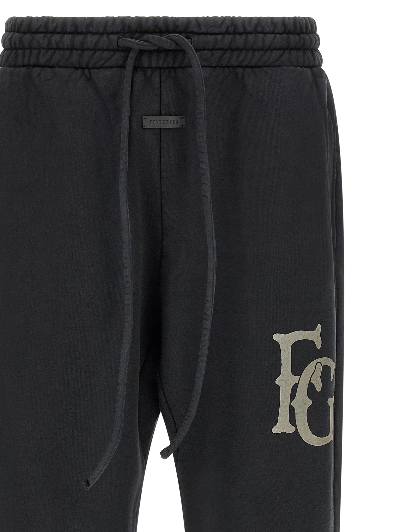 ‘FG Classic’ joggers in heavy cotton sweatshirt with sunfade treatment, straight leg, hand-printed graphic and tone-on-tone leather logo patch on the front, drawstring elastic waistband, pockets, elastic cuffs on the leg bottoms.