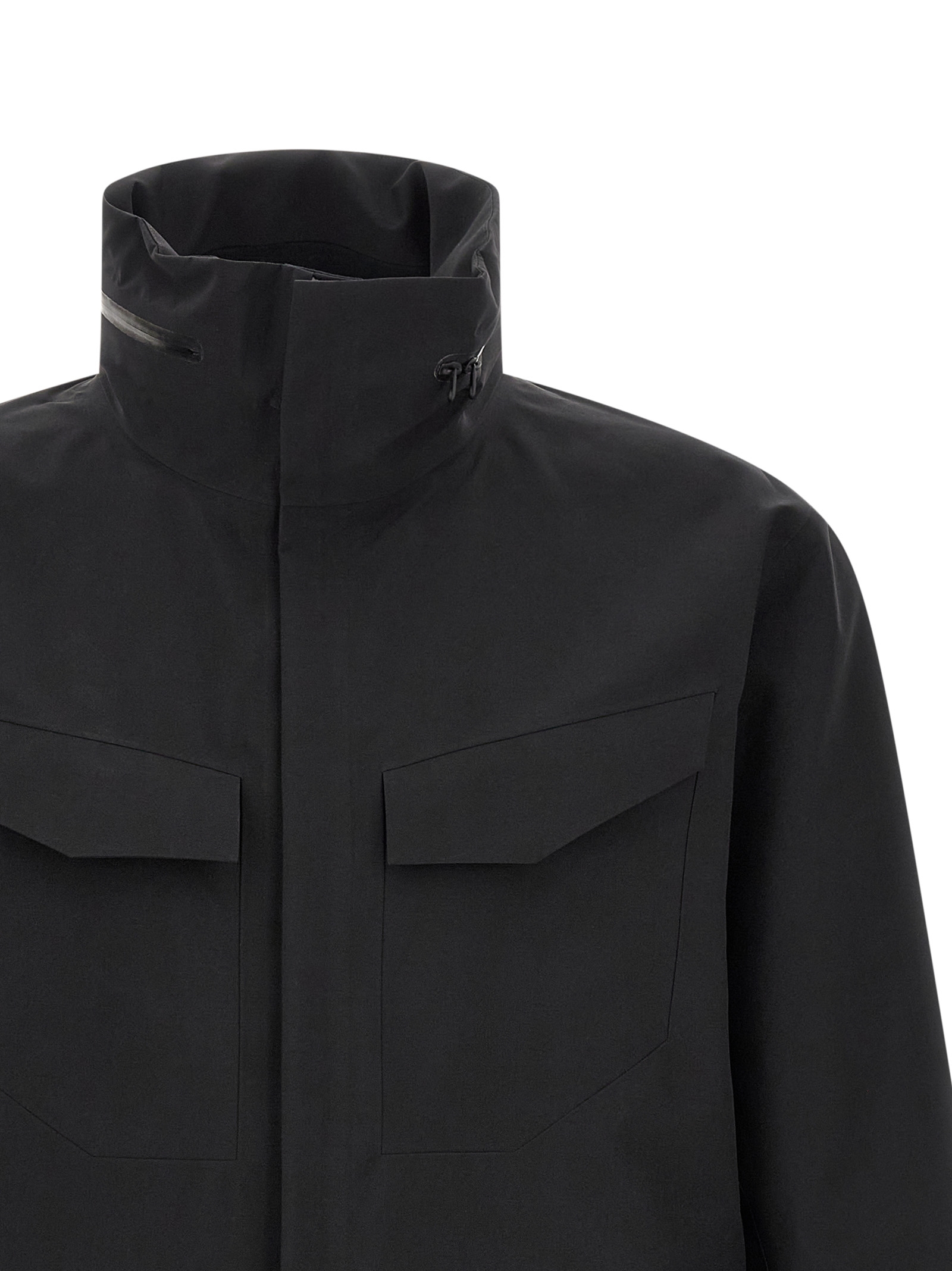 ‘Field’ water-repellent and breathable GORE-TEX PRO ePE jacket, standing collar with adjustable ‘StowHood’ removable hood, concealed front zip closure, pockets, long sleeves with adjustable cuffs, unlined.