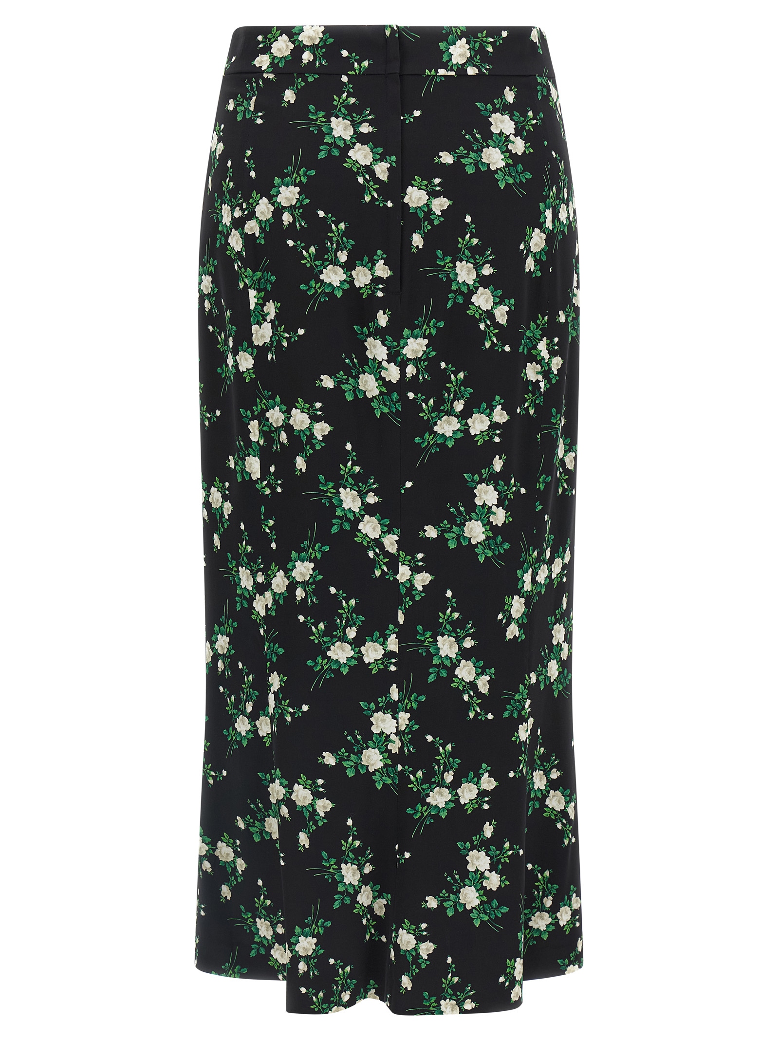 ‘Fiorellini’ print silk midi skirt, silk underskirt, straight silhouette with slightly flared bottom, back zip closure.