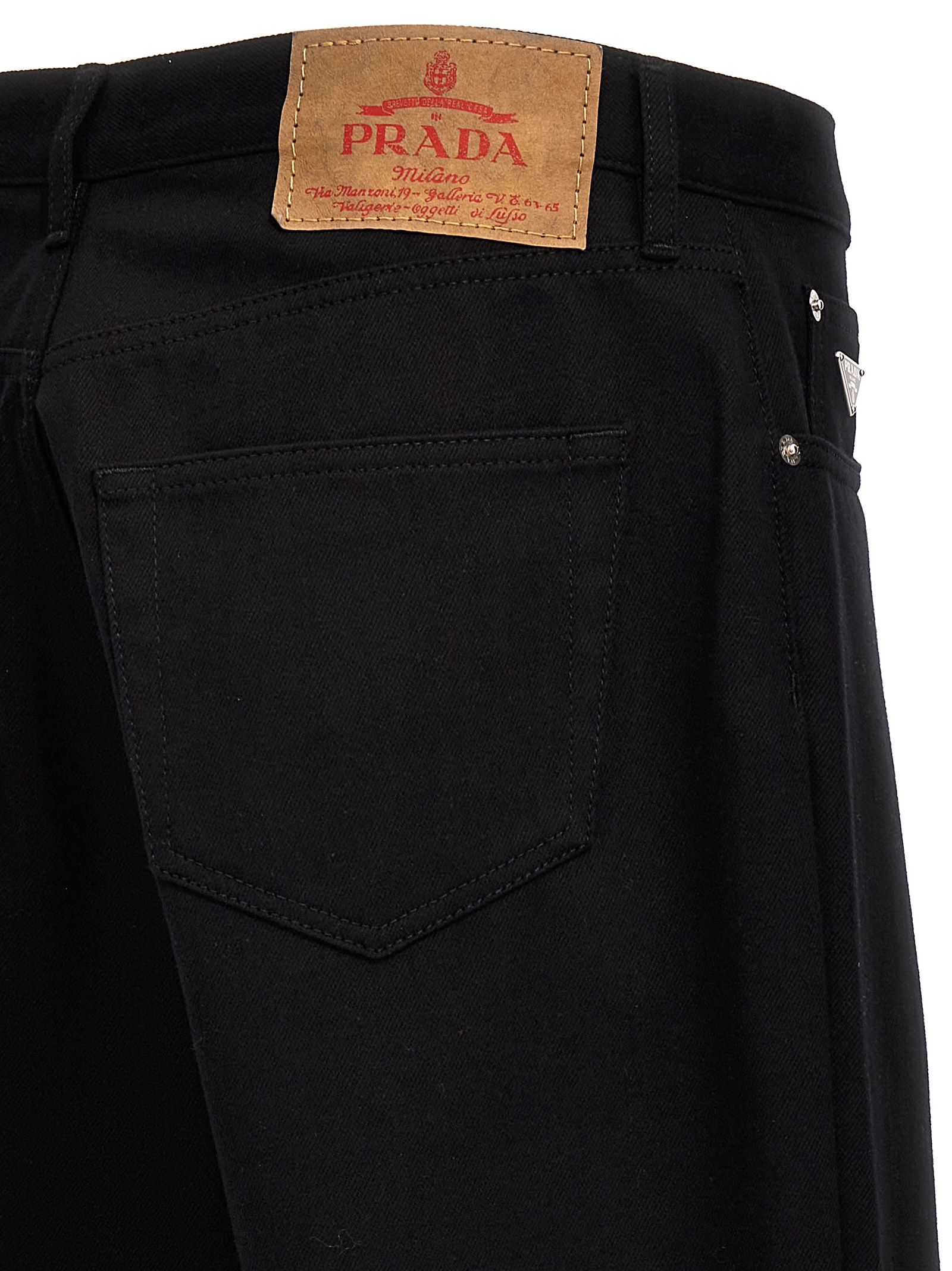 Five-pocket denim jeans with cigarette leg, regular waist with regular closure, triangle logo detail, logo label.