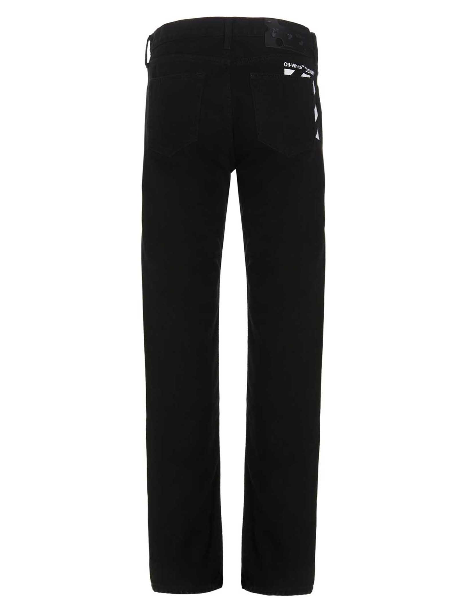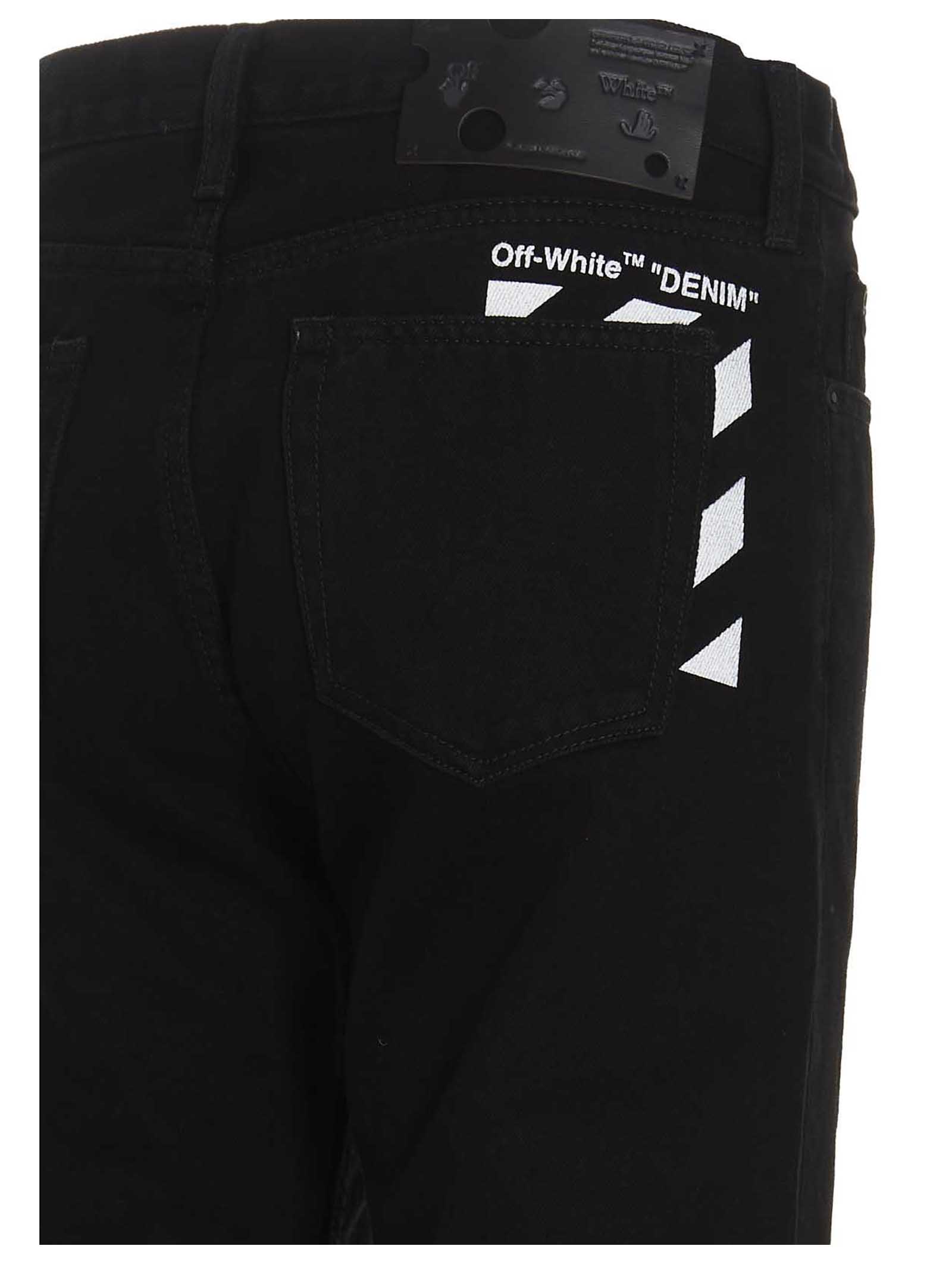 Cotton denim jeans with five pockets, zip and button fly, stone wash denim, stripe print detail on the back, slim fit.