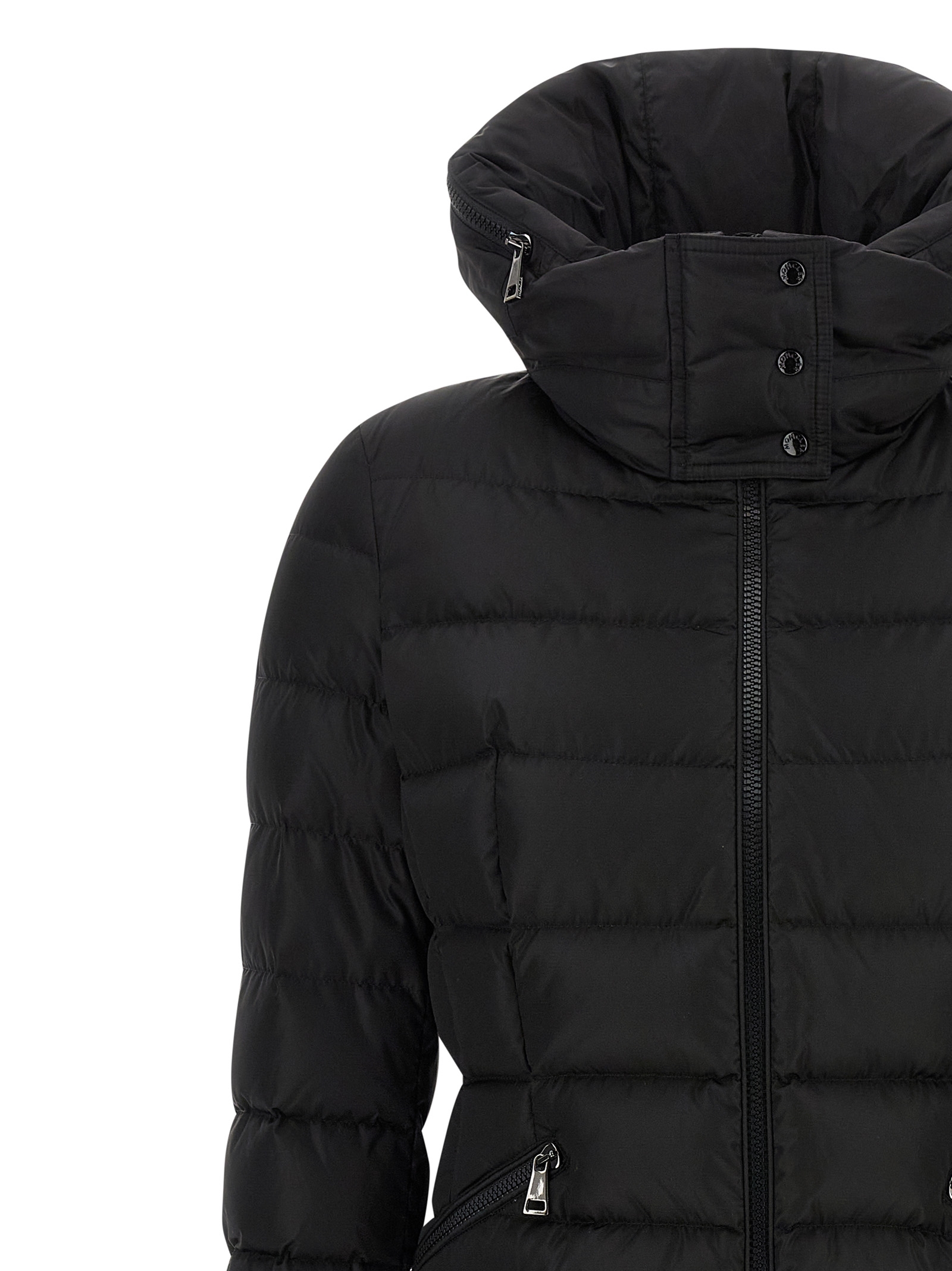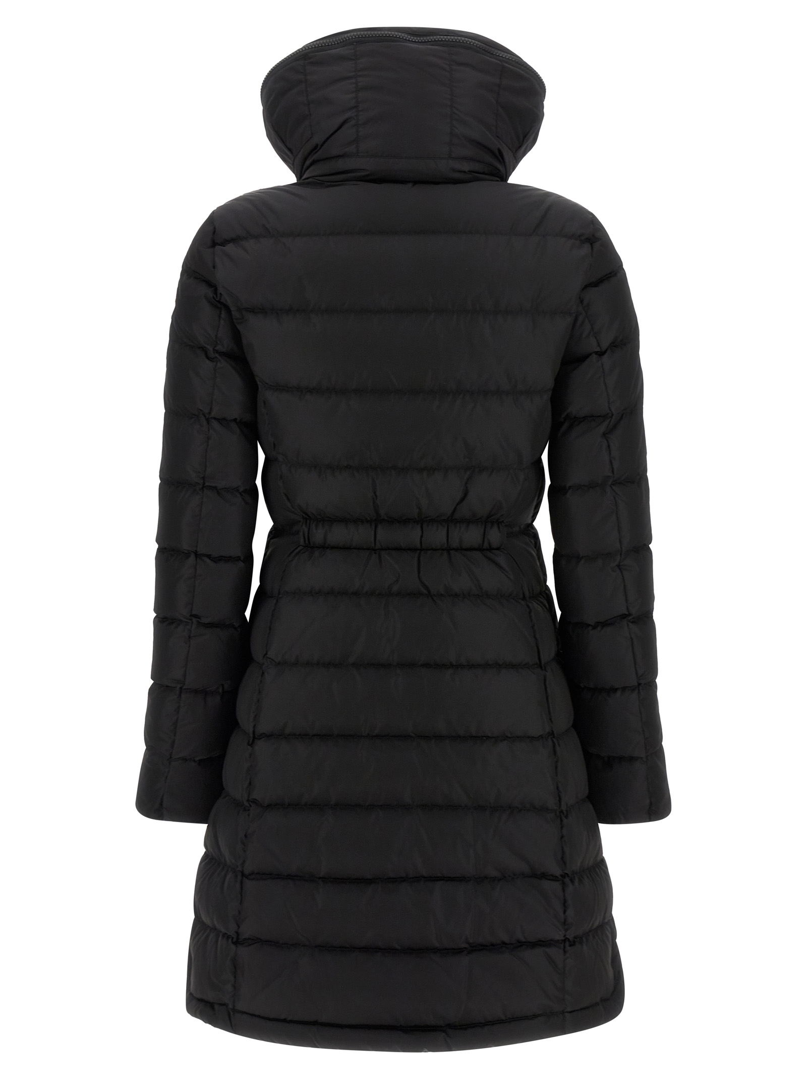 ‘Flammette’ padded and quilted nylon jacket, high neck with zip and removable hood, elastic waistband, zip closure, long sleeves with elastic.