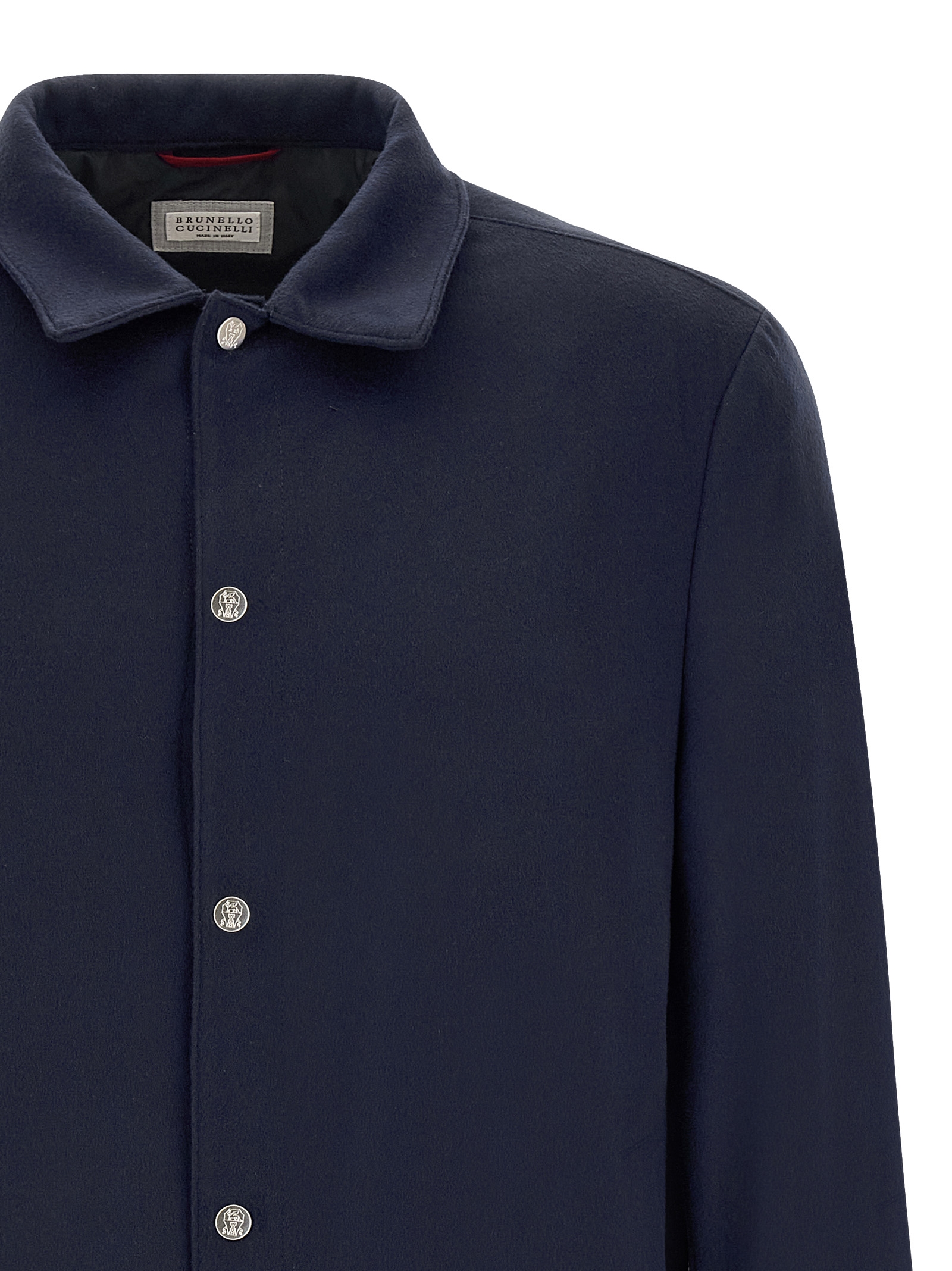 Light cashmere flannel overshirt, shirt collar, front snap button closure, low pockets with snap button, long sleeves with adjustable cuffs, nylon semi-lining, two inner pockets with button closure and pen pocket.