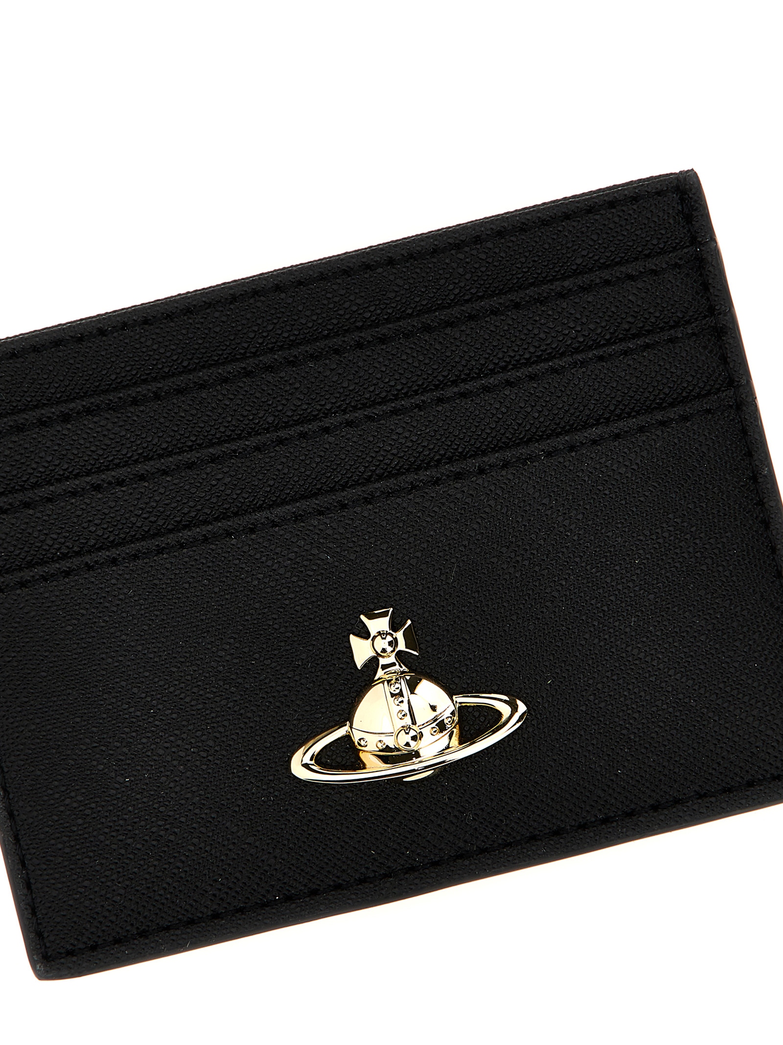 ‘Flat’ card holder in Saffiano-effect fabric with embossed metal Orb logo on the front.