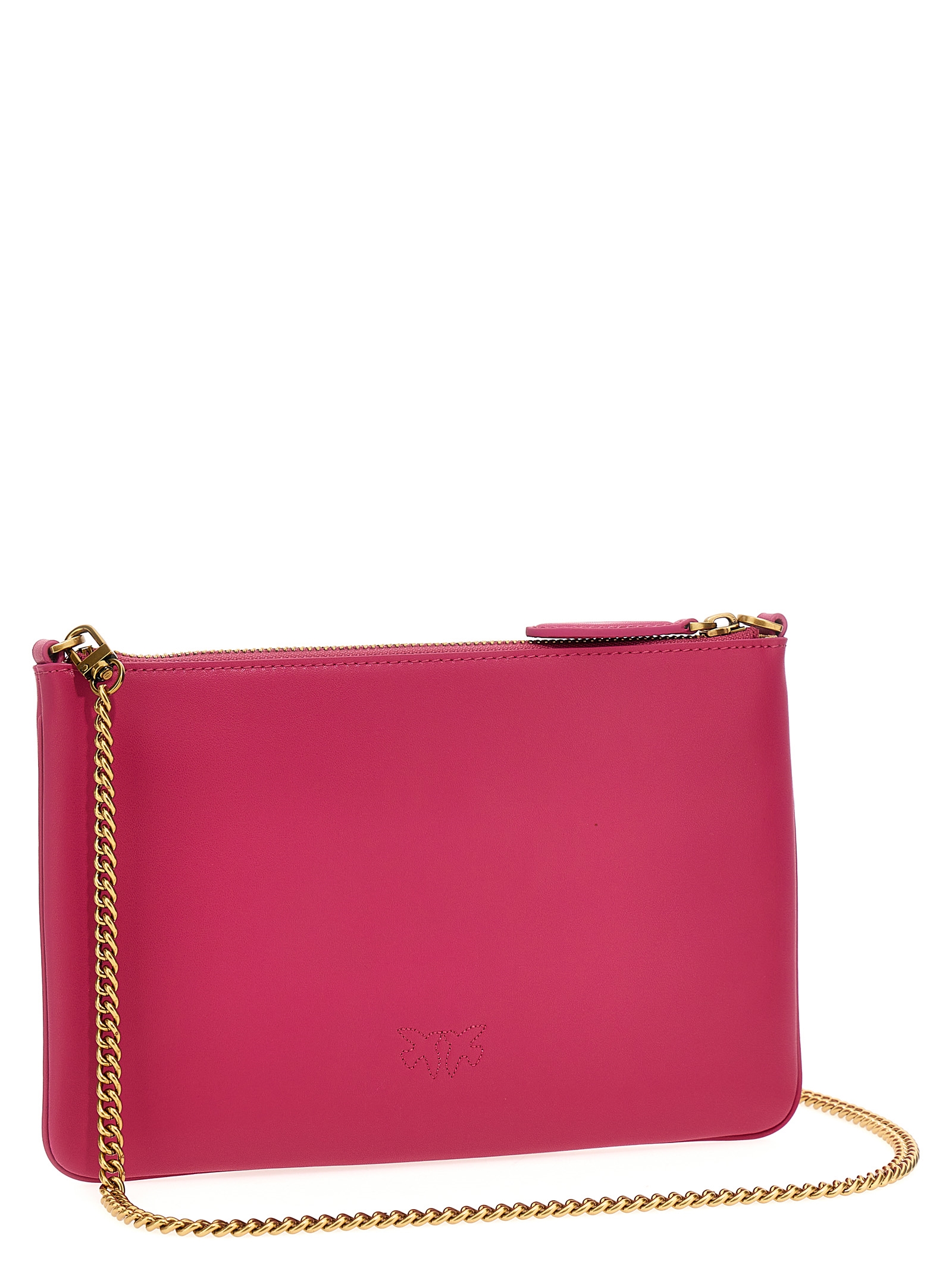 Flat’ leather clutch bag with zip closure and a removable chain shoulder strap.