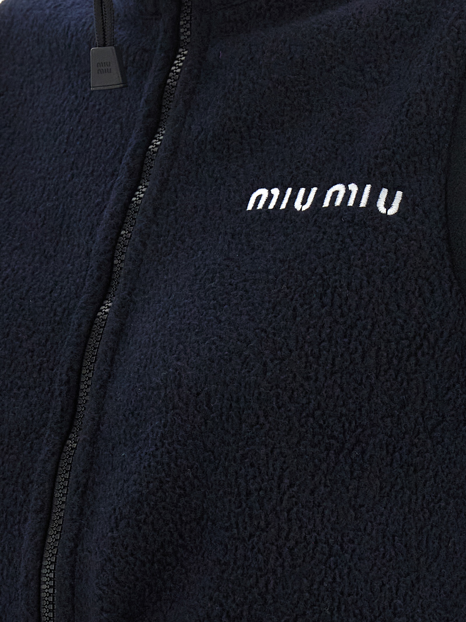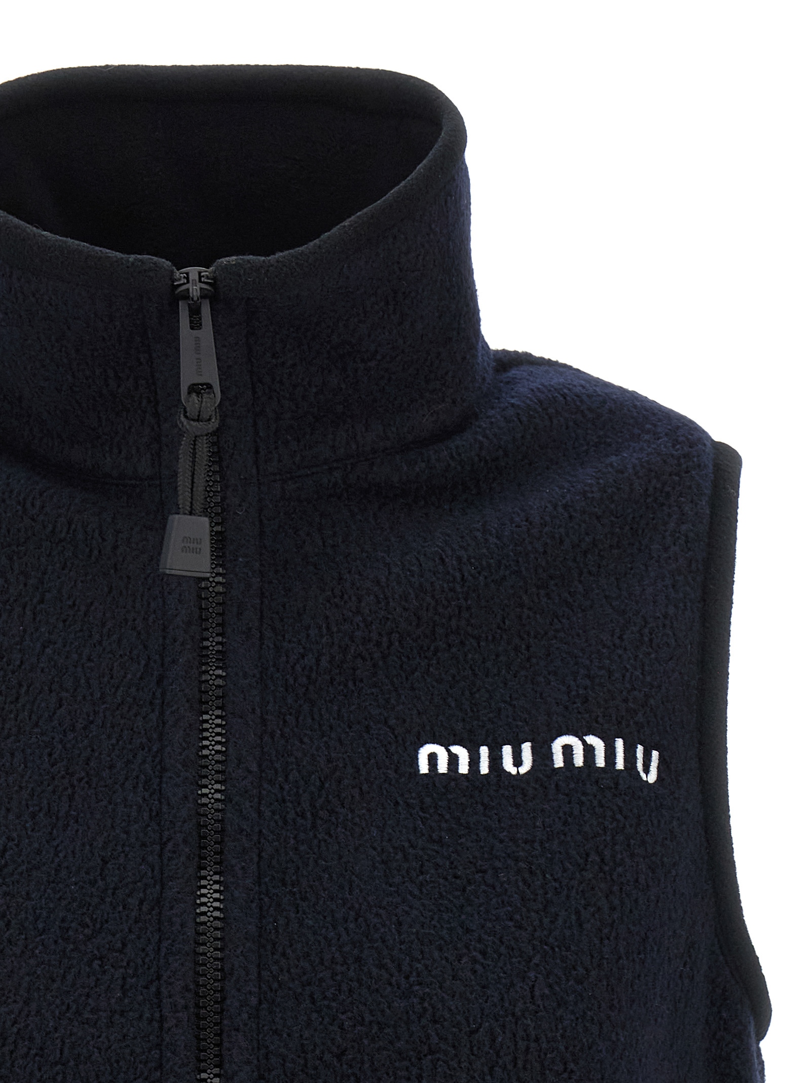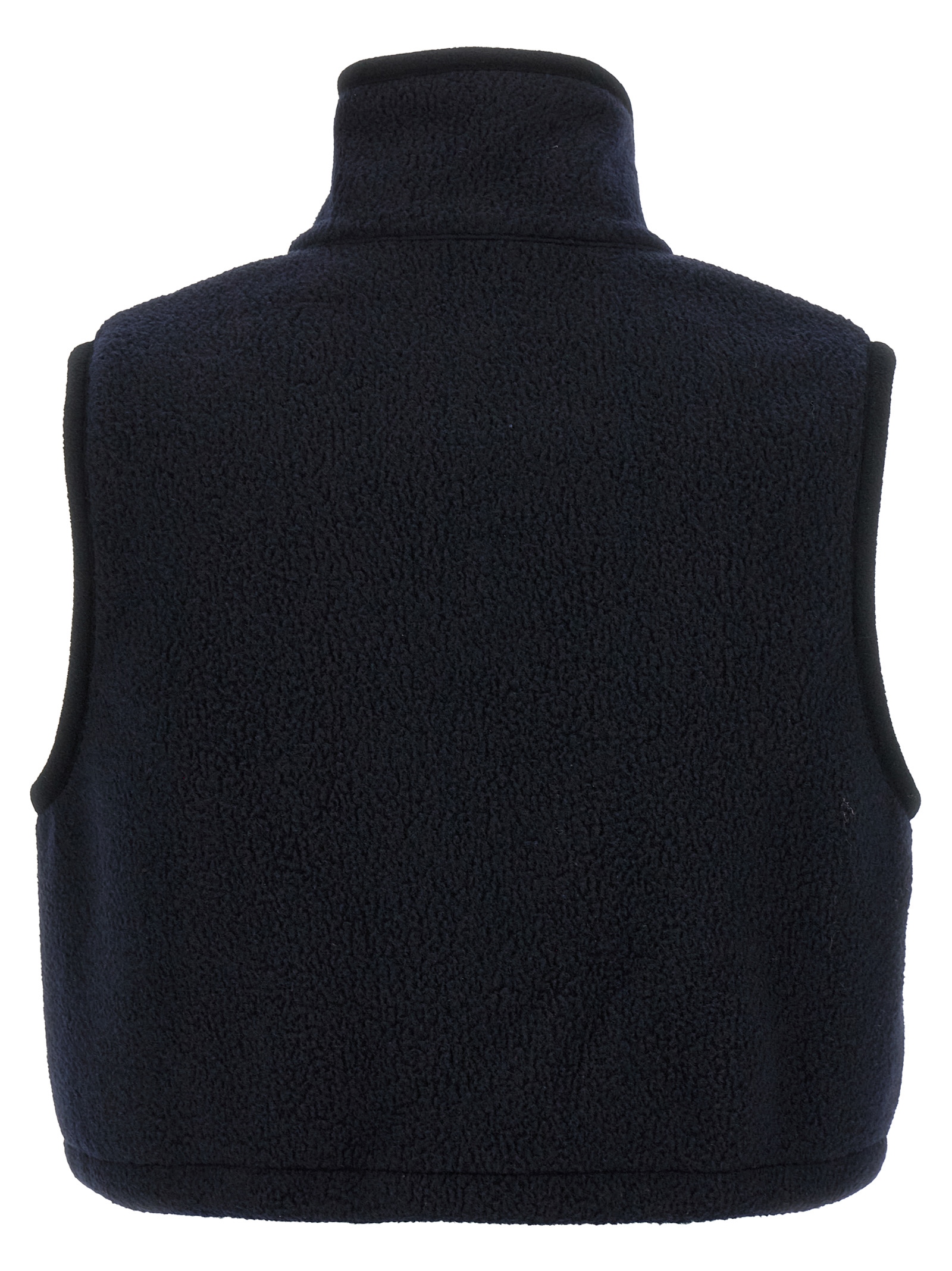 Fleece vest, crop model, logo embroidery and front zip closure, pockets, high neck, drawstring on the hem.