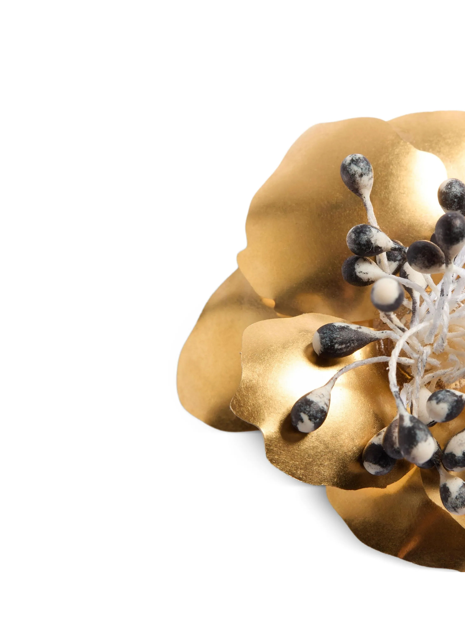 Small ‘Fleur Lumineuse’ brooch in antique brass with irregular petals, pistil with fabric painted and applied by hand.