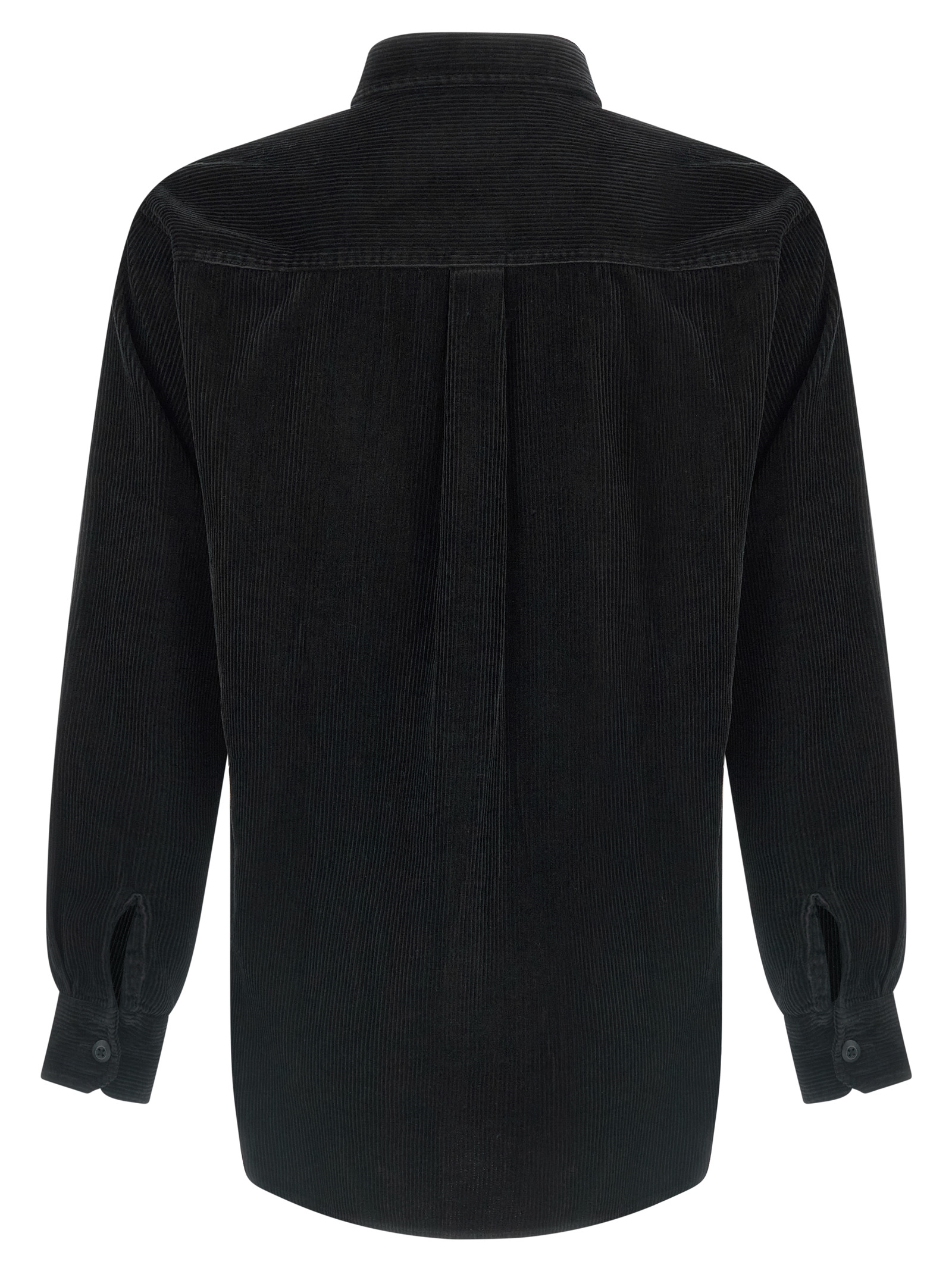 ‘Flint’ corduroy shirt with front button closure, collar, front pocket with front logo patch, long cuffed sleeves.