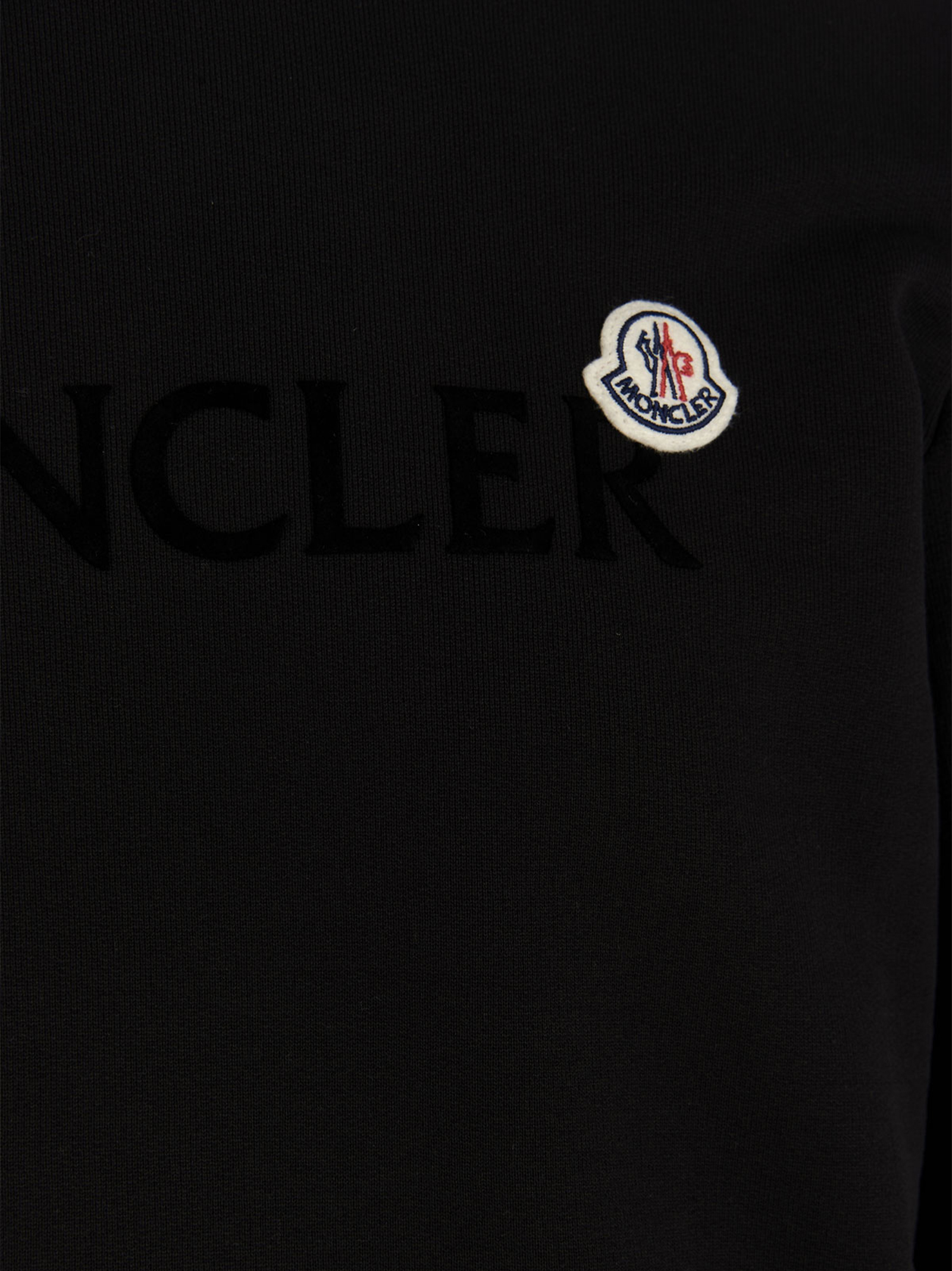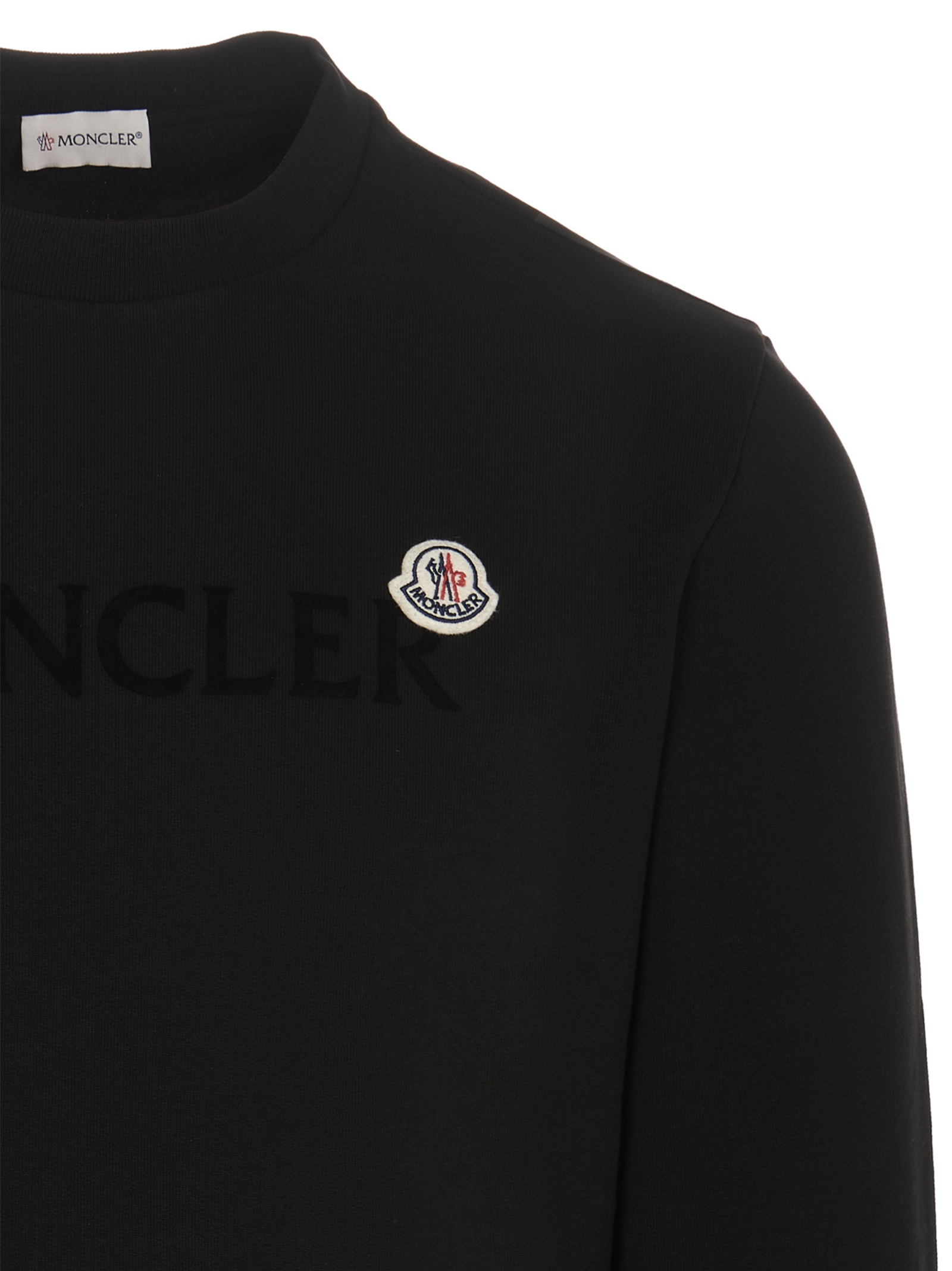 Cotton jersey sweatshirt with tone-on-tone flocked logo and front felt logo patch, crew neck, long cuffed sleeves and slightly dropped shoulders.