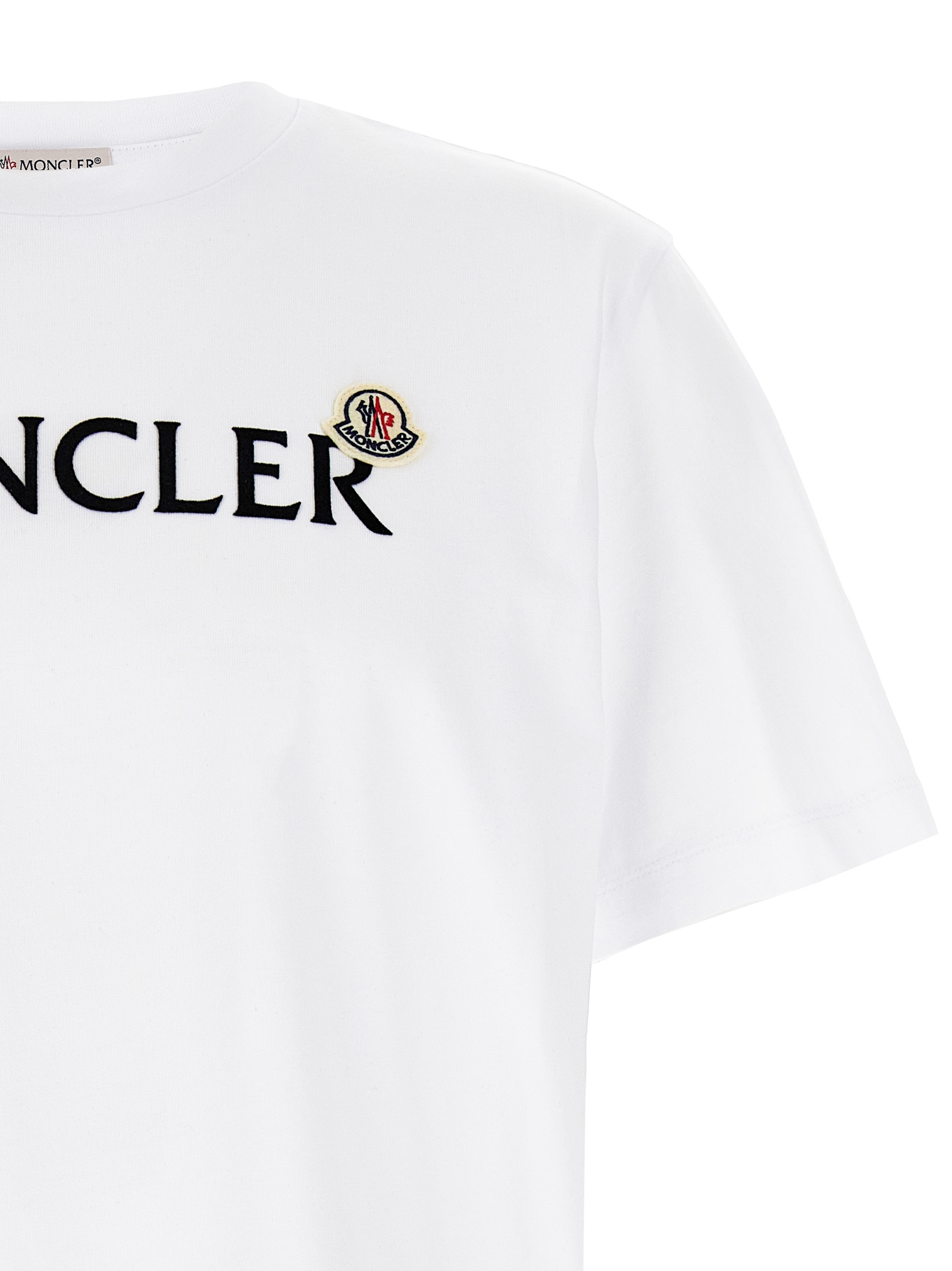 Cotton jersey t-shirt with contrasting flocked logo and front felt logo patch, crew neck, and short sleeves.
