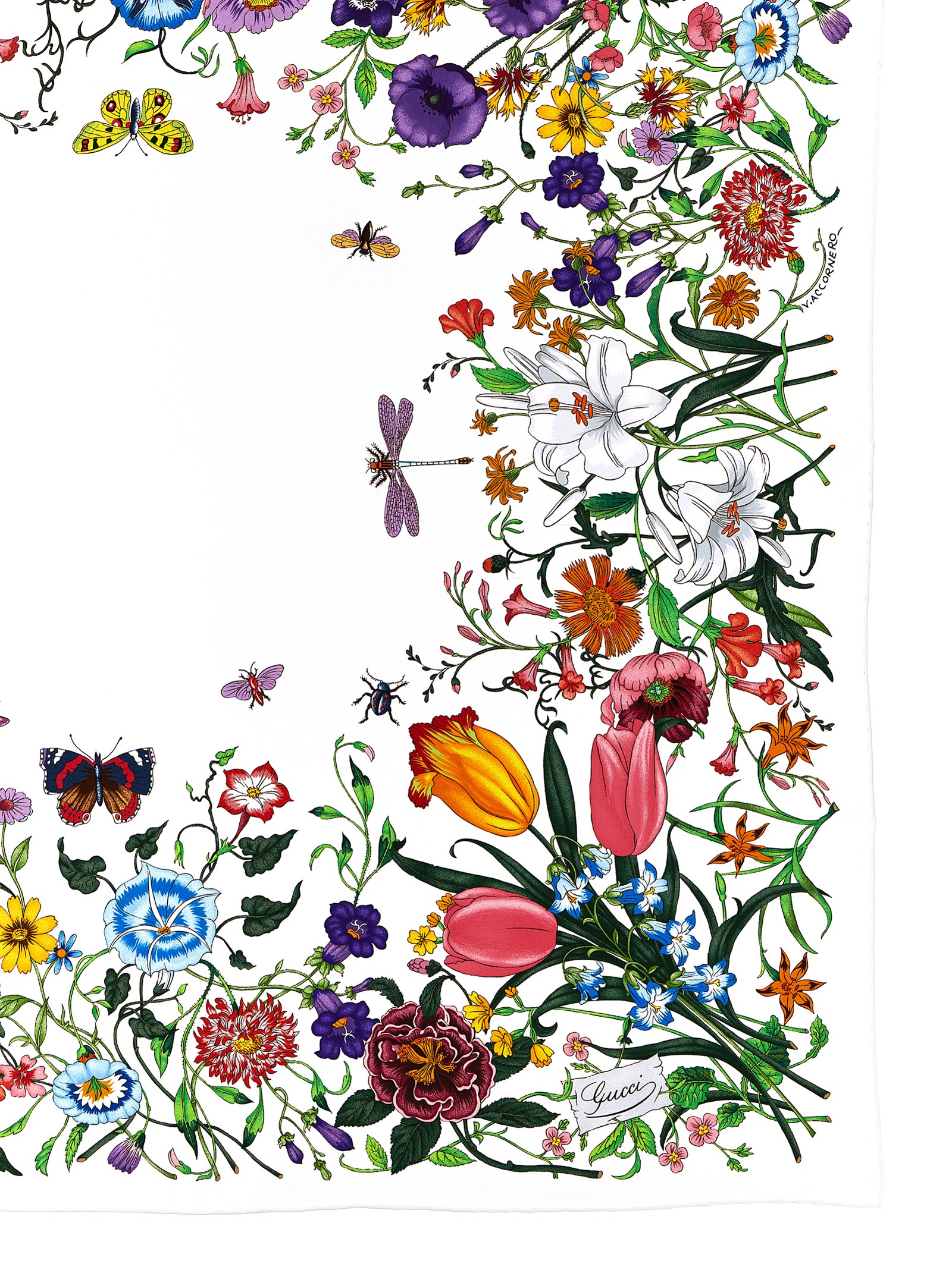 ‘Flora’ silk scarf with all-over floral print.