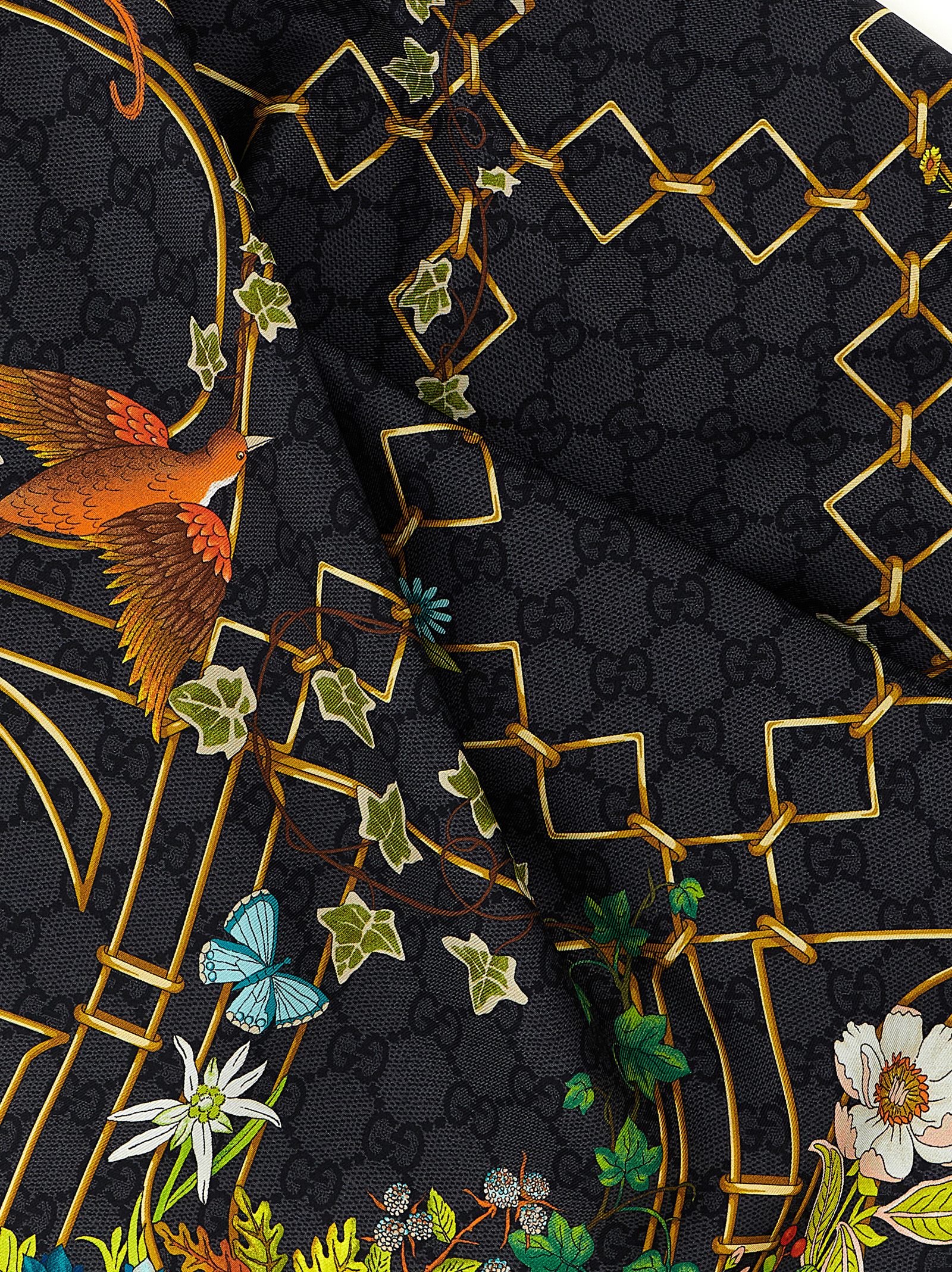 Gucci GG all-over floral print silk twill carré.