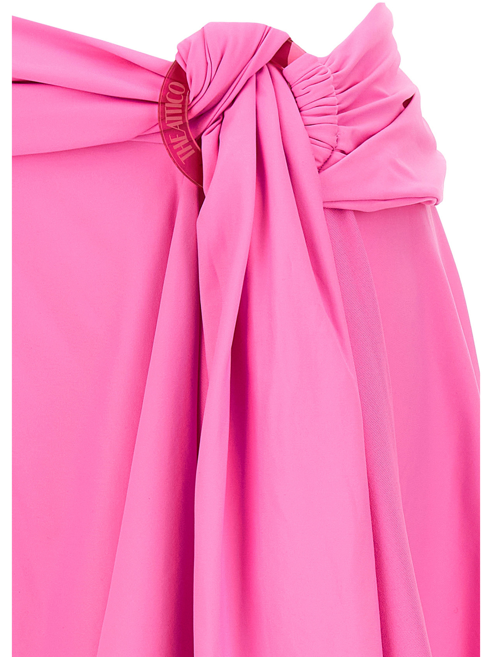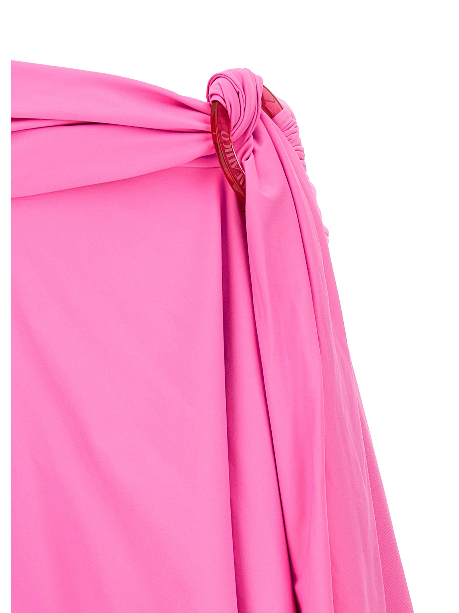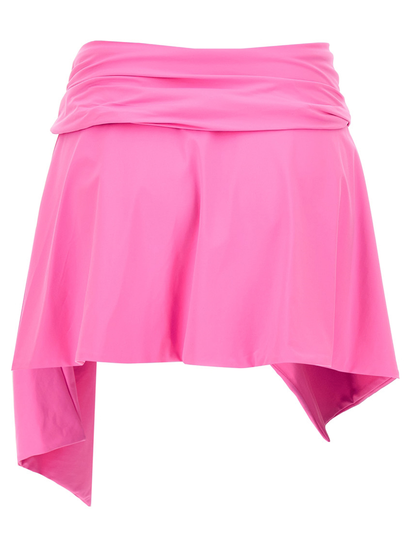 Lycra miniskirt with flounces and a contrast plastic ring detail.