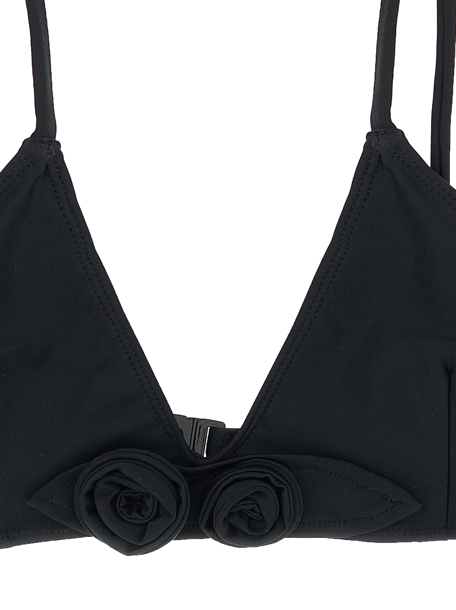 ‘Flower’ triangle bikini top in technical fabric with pincer and central floral detail, thin adjustable straps, back hook closure.