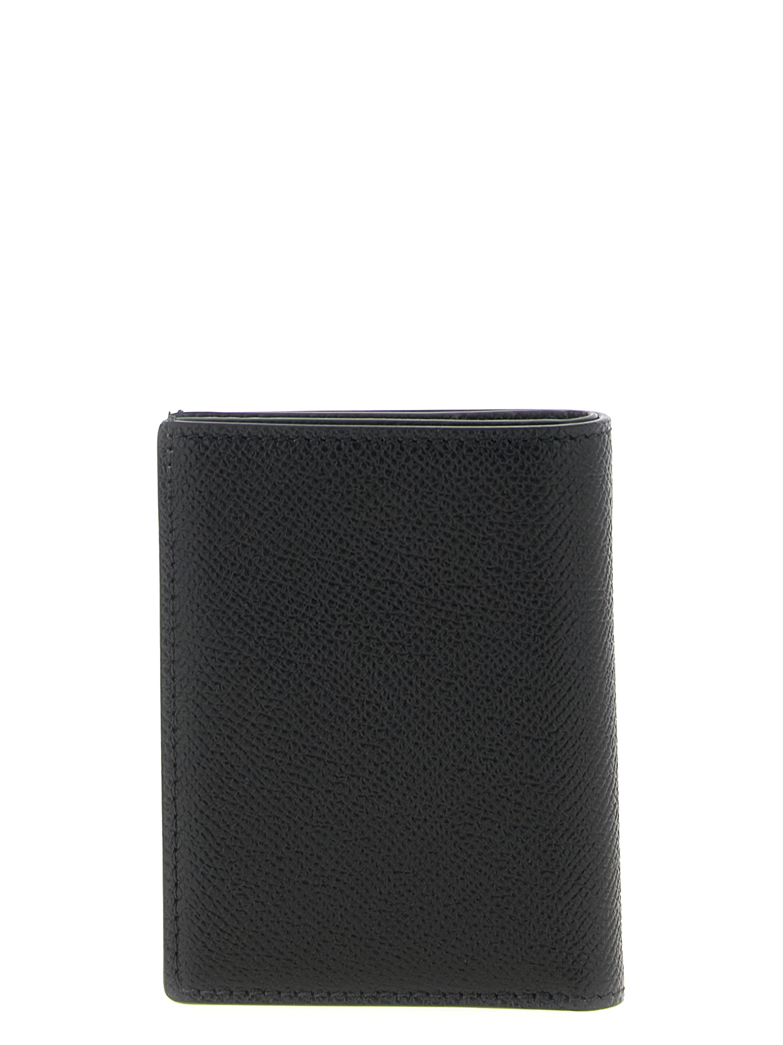 Foldable small-grain leather cardholder with gold metallic front logo.
