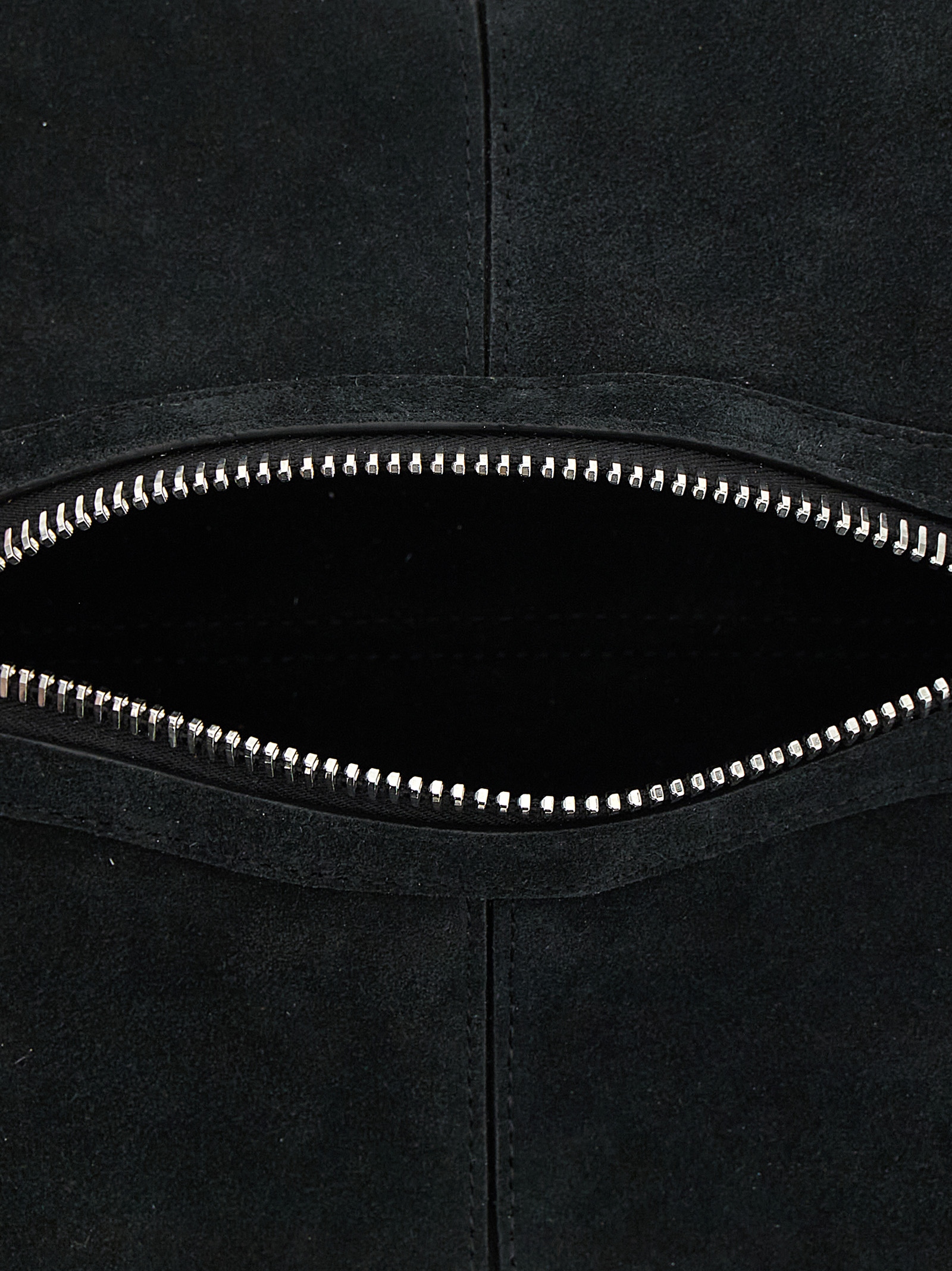 ‘Folded Mini’ suede handbag with front embossed logo, zip closure, double fixed tubular handle.