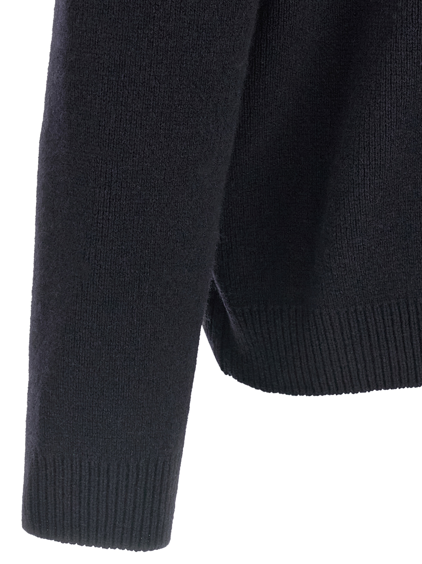 Milan stitch wool sweater with front ‘Fox Head’ patch, crew neck, long cuffed sleeves.