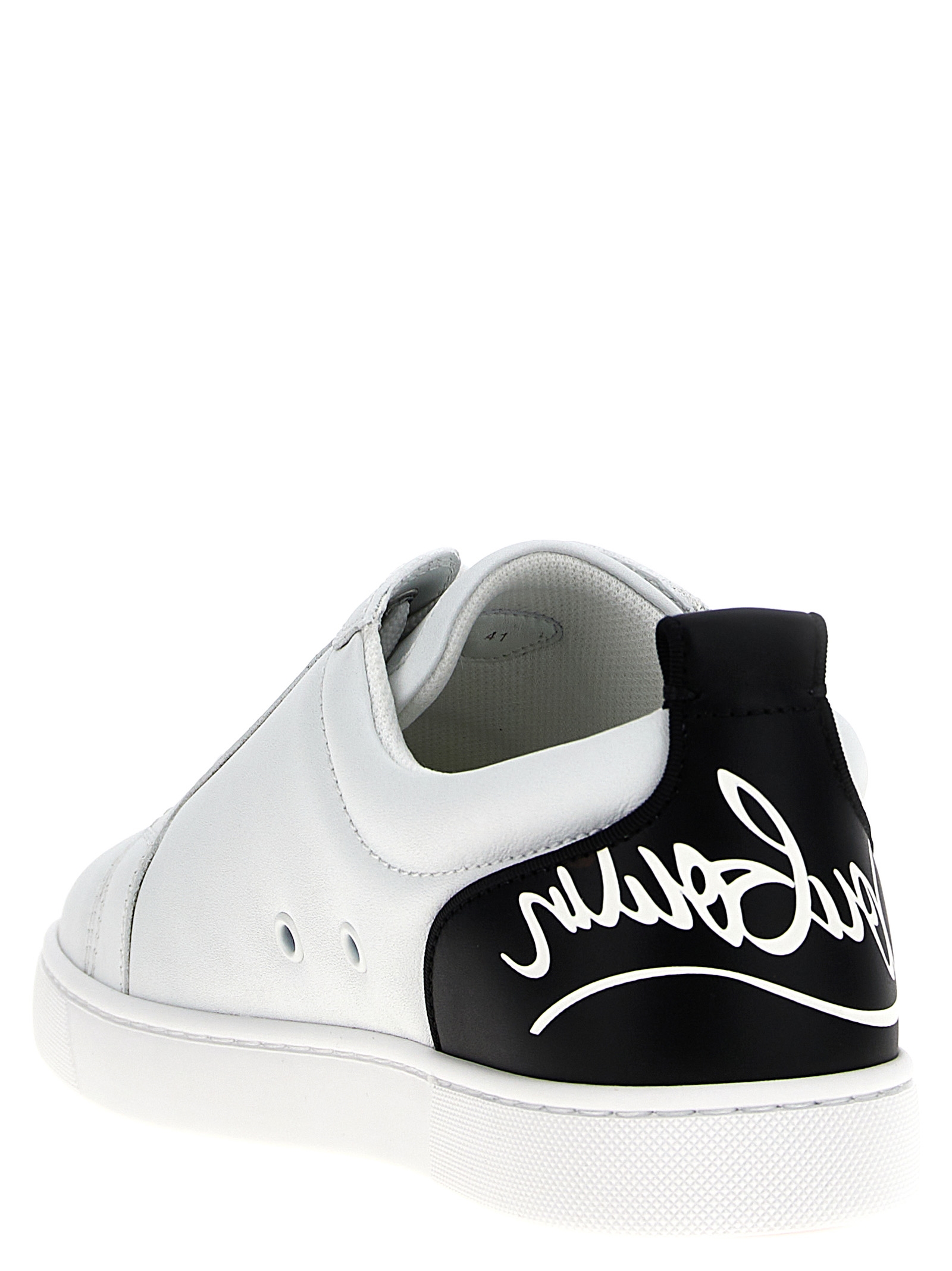 ‘Fun Louis Junior Flat’ leather sneakers with contrasting heel, lace-up closure, rubber sole.