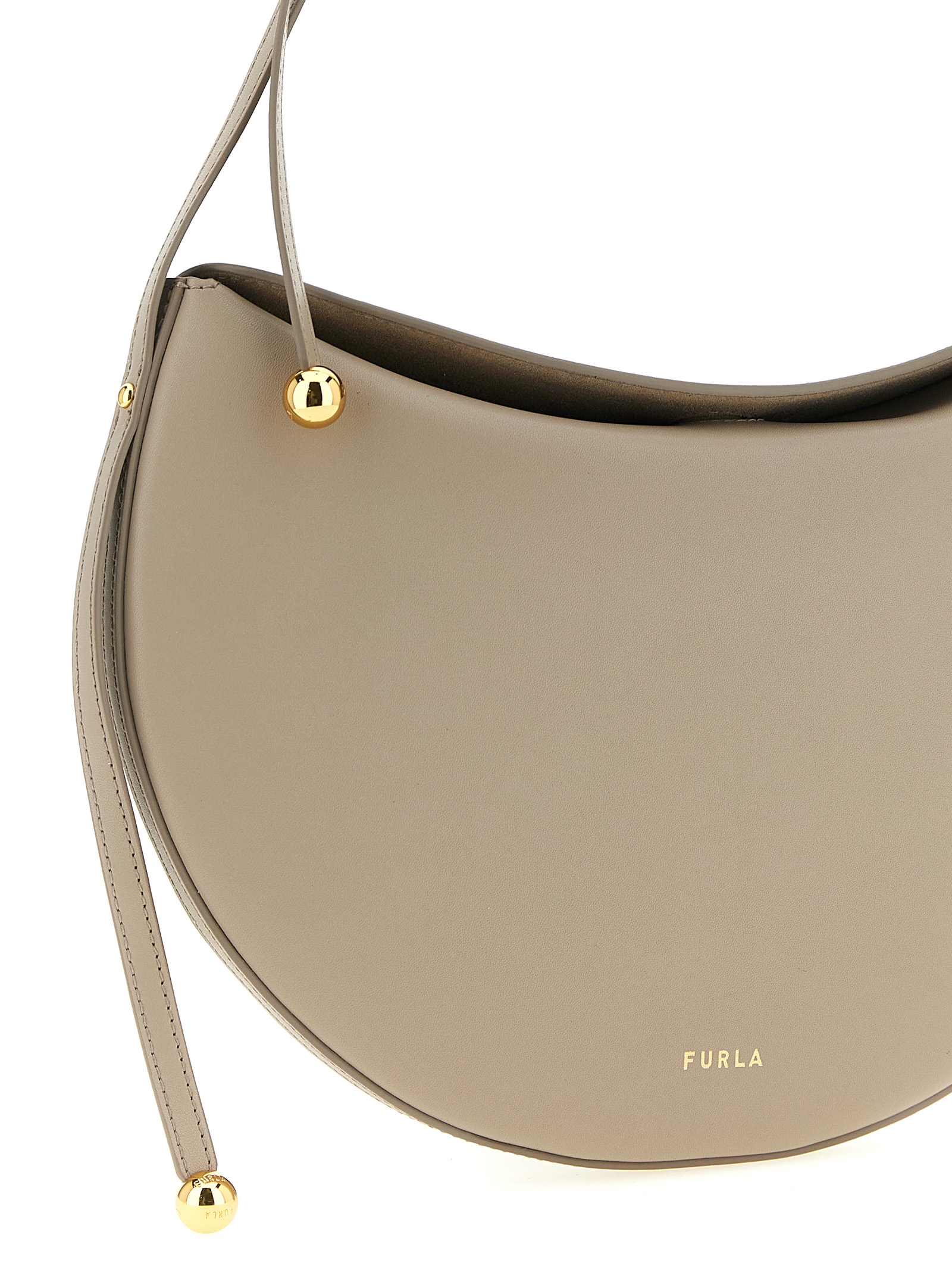 Small ‘Furla Moonstone’ shoulder bag in calf leather, front embossed logo, top magnetic folded closure, adjustable shoulder strap with cylindrical hardware and the two ball elements.