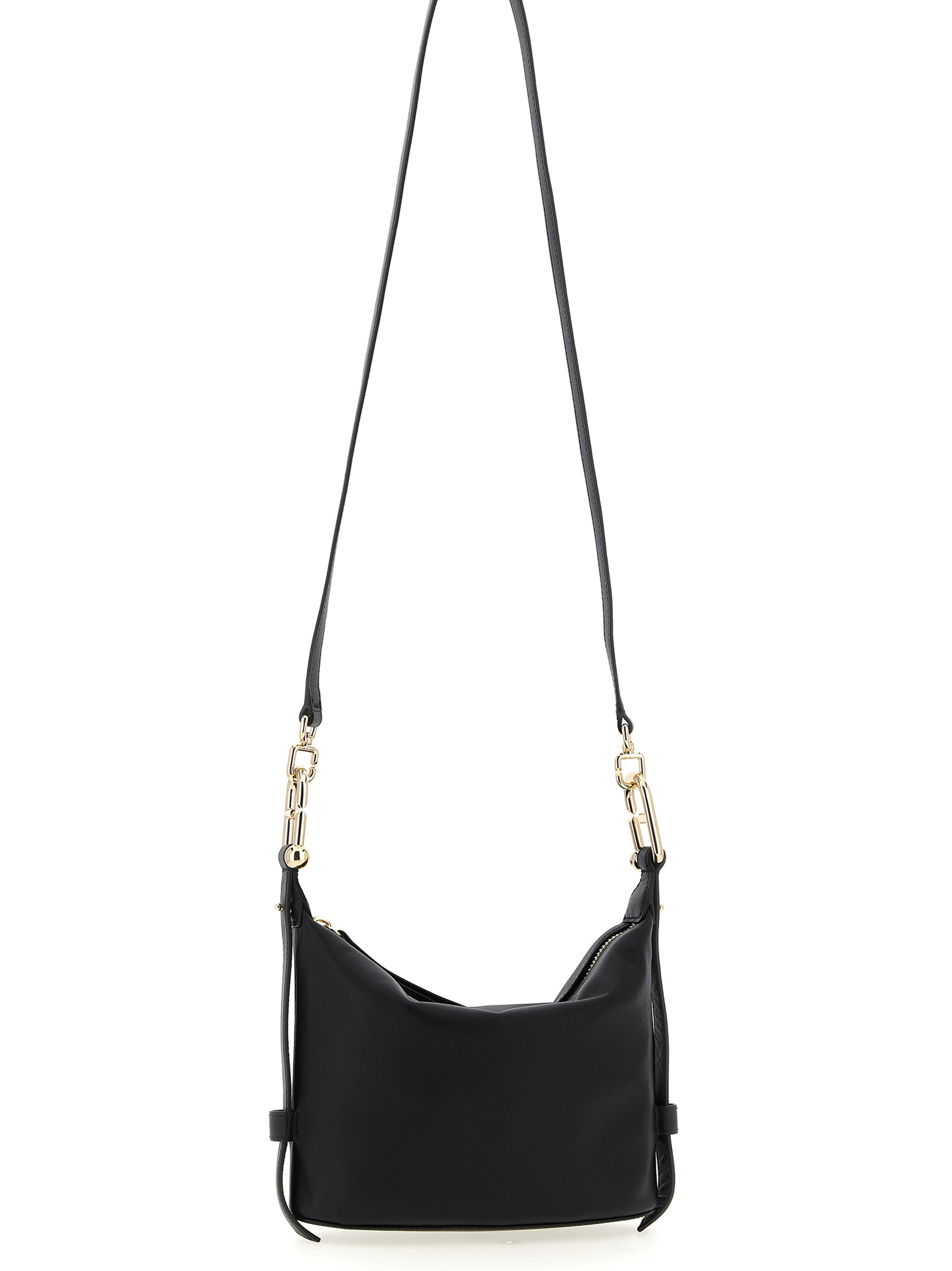 ‘Furla Nuvola’ mini handbag in grainy leather, handle composed of two intertwined Arcosfera hardware that combine the iconic Arco Furla logo, top zip closure, front embossed logo, possibility to add a shoulder strap to the handle.