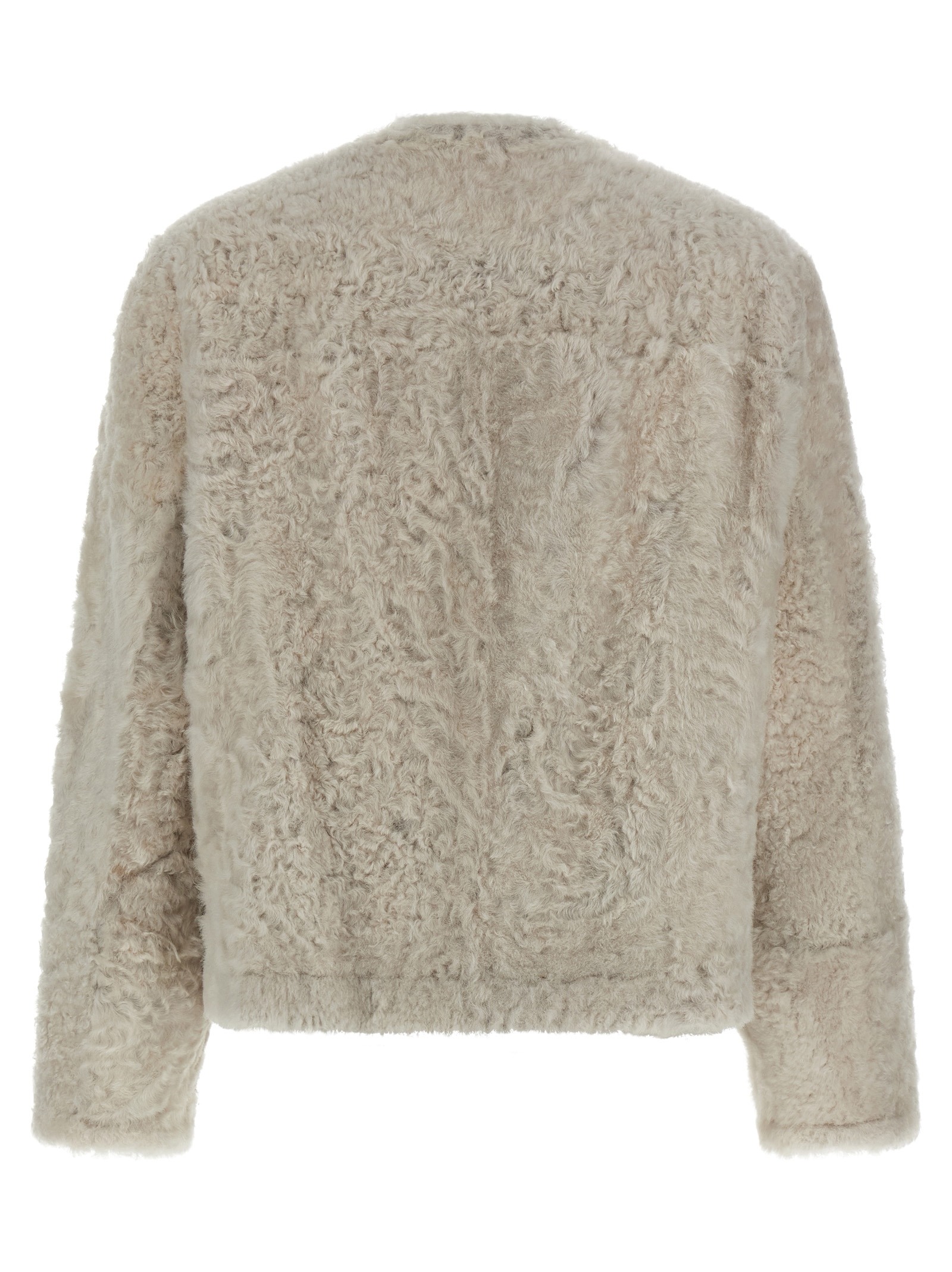 Reversible caban in ‘Fuzzy’ shearling and nappa leather, double-breasted crop model with front button closure, crew neck, pockets, long sleeves.