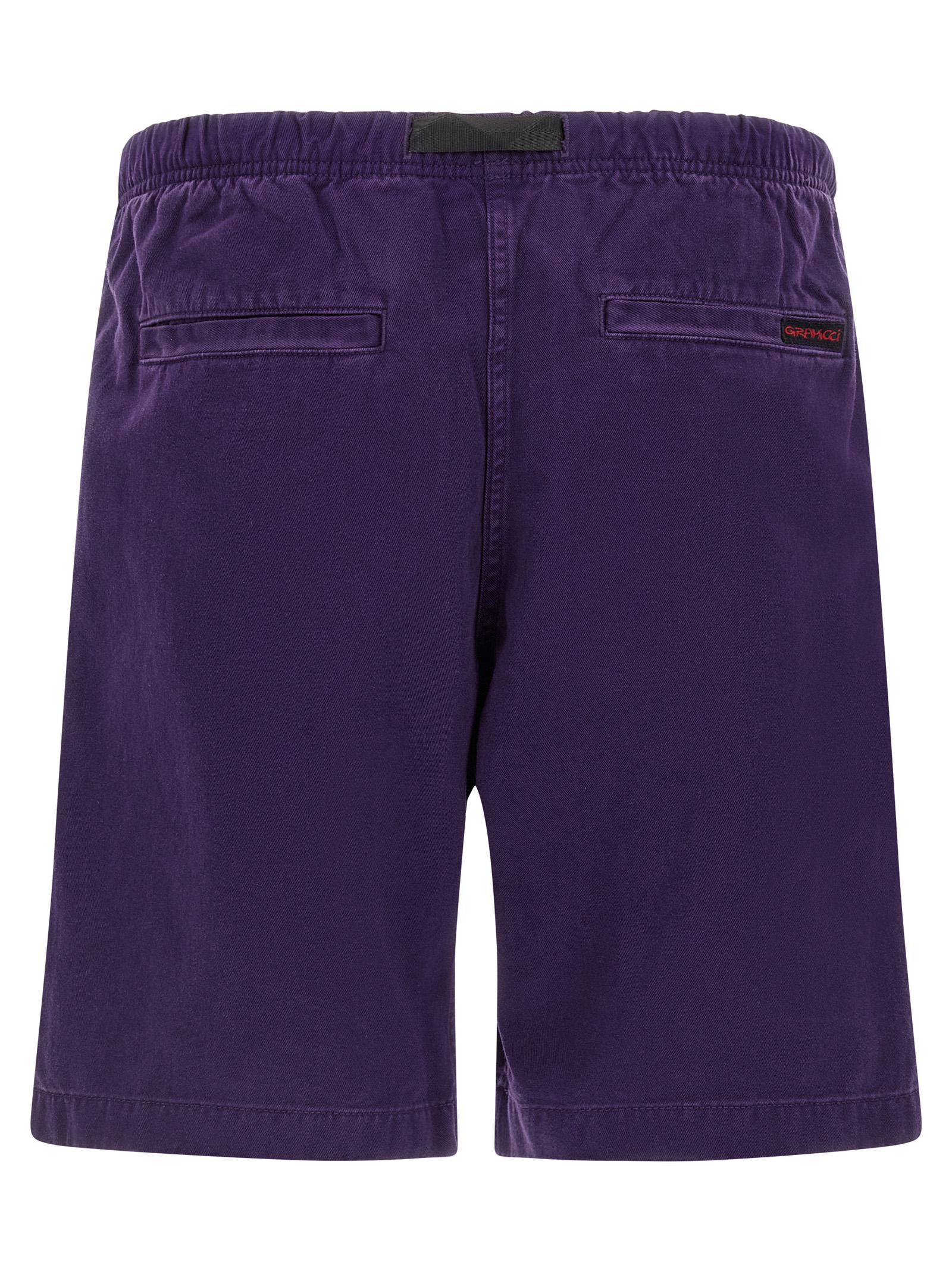 ‘G-Short’ cotton twill bermuda shorts with exclusive pigment for a vintage look, elastic waistband with integrated Gramicci belt system with adjustable tape cord, reinforced crotch, pockets.
