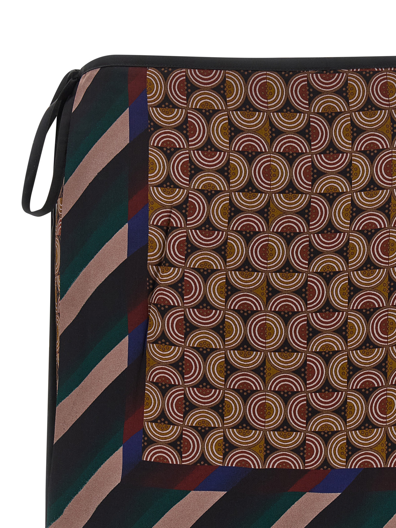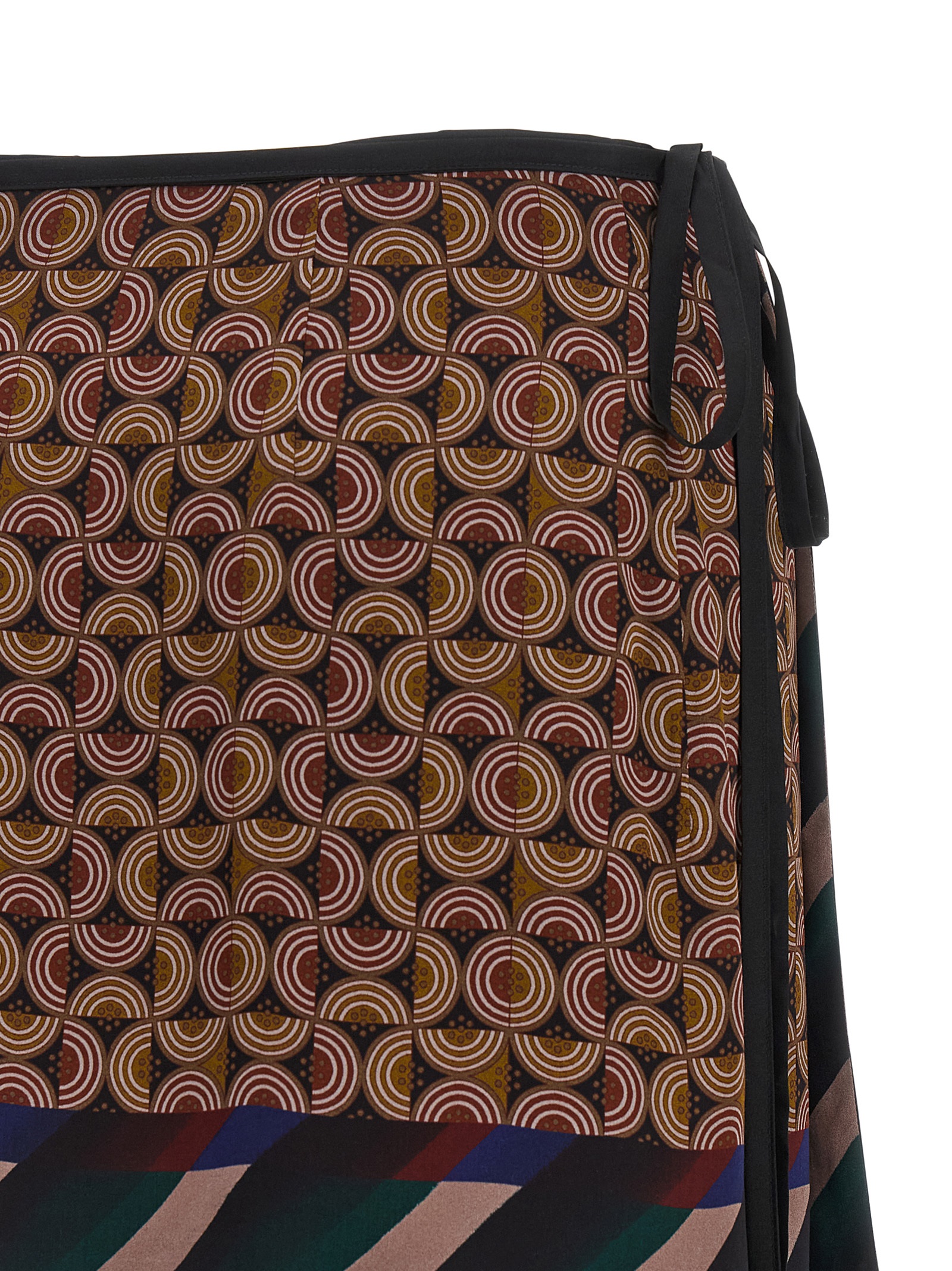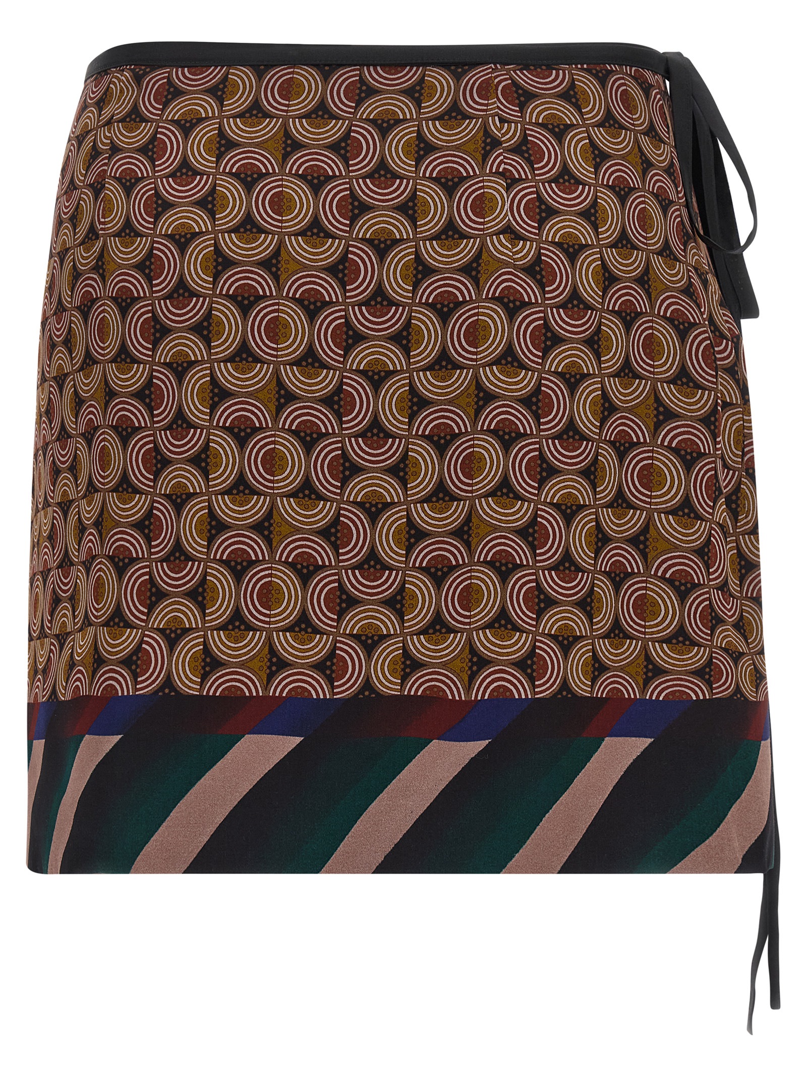 ‘Gabrinas’ mini skirt in patterned viscose and silk blend, wallet style with side lace closure.