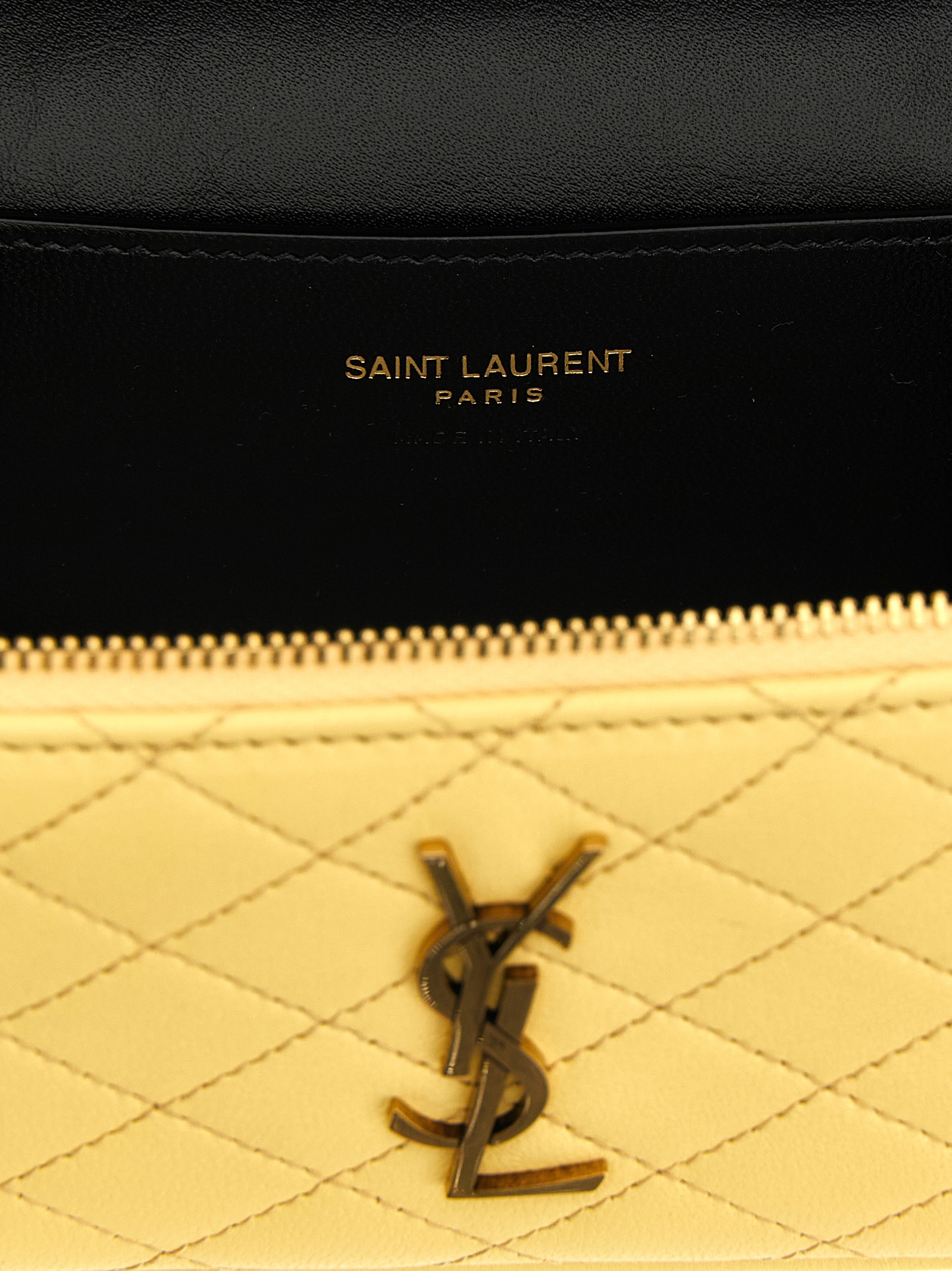 ‘Gaby Vanity’ diamond-shaped quilted leather handbag, front metal Cassandra decoration, zip closure, fixed handle, adjustable and removable shoulder strap.
