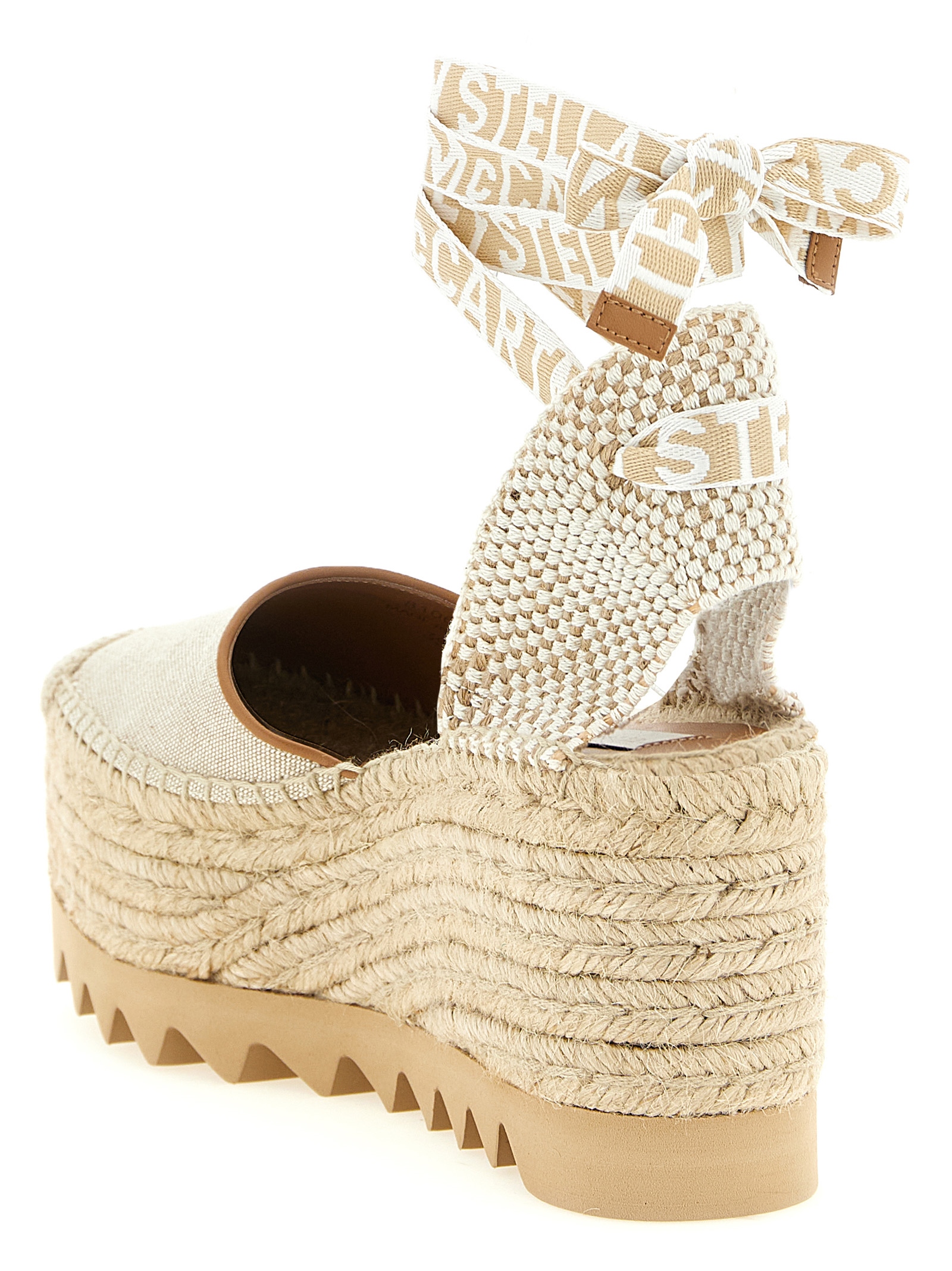 ‘Gaia’ canvas espadrilles, Alter Mat lining, angular square toe, jacquard logo ribbon to tie at the ankle, woven jute wedge, micro lightweight sole with serrated edge.
