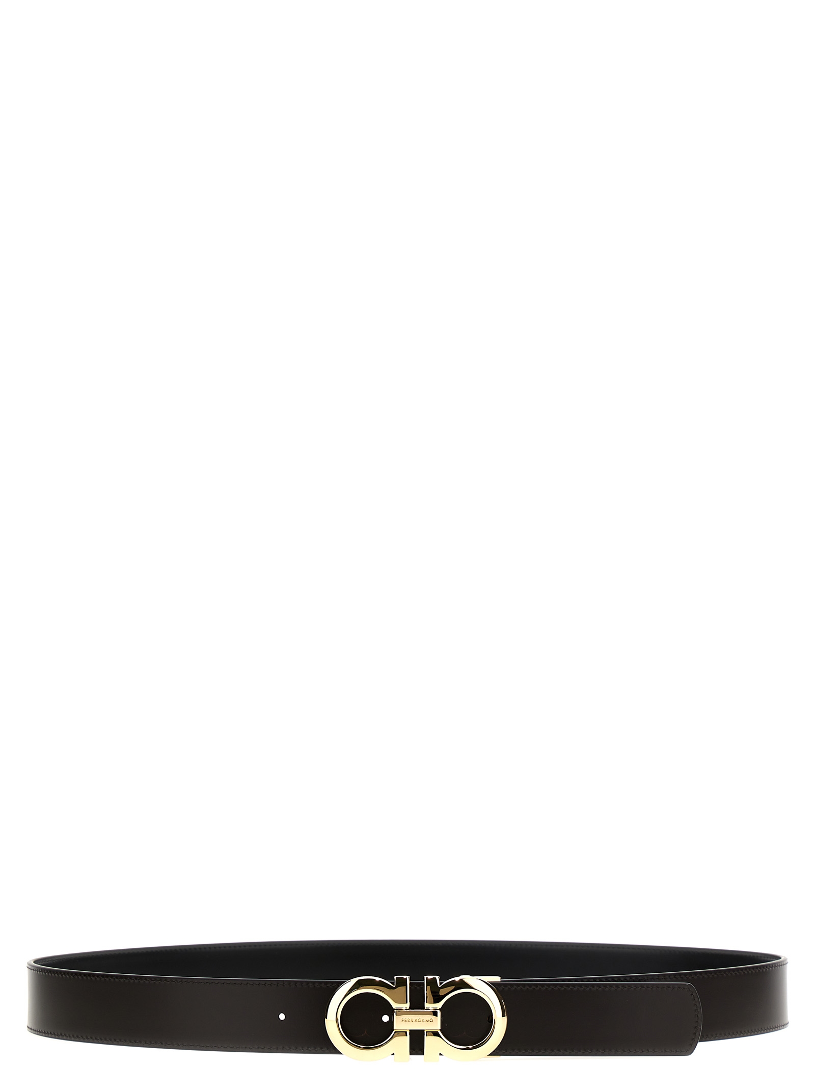 Black and brown leather reversible belt, metal ‘Gancini’ buckle.