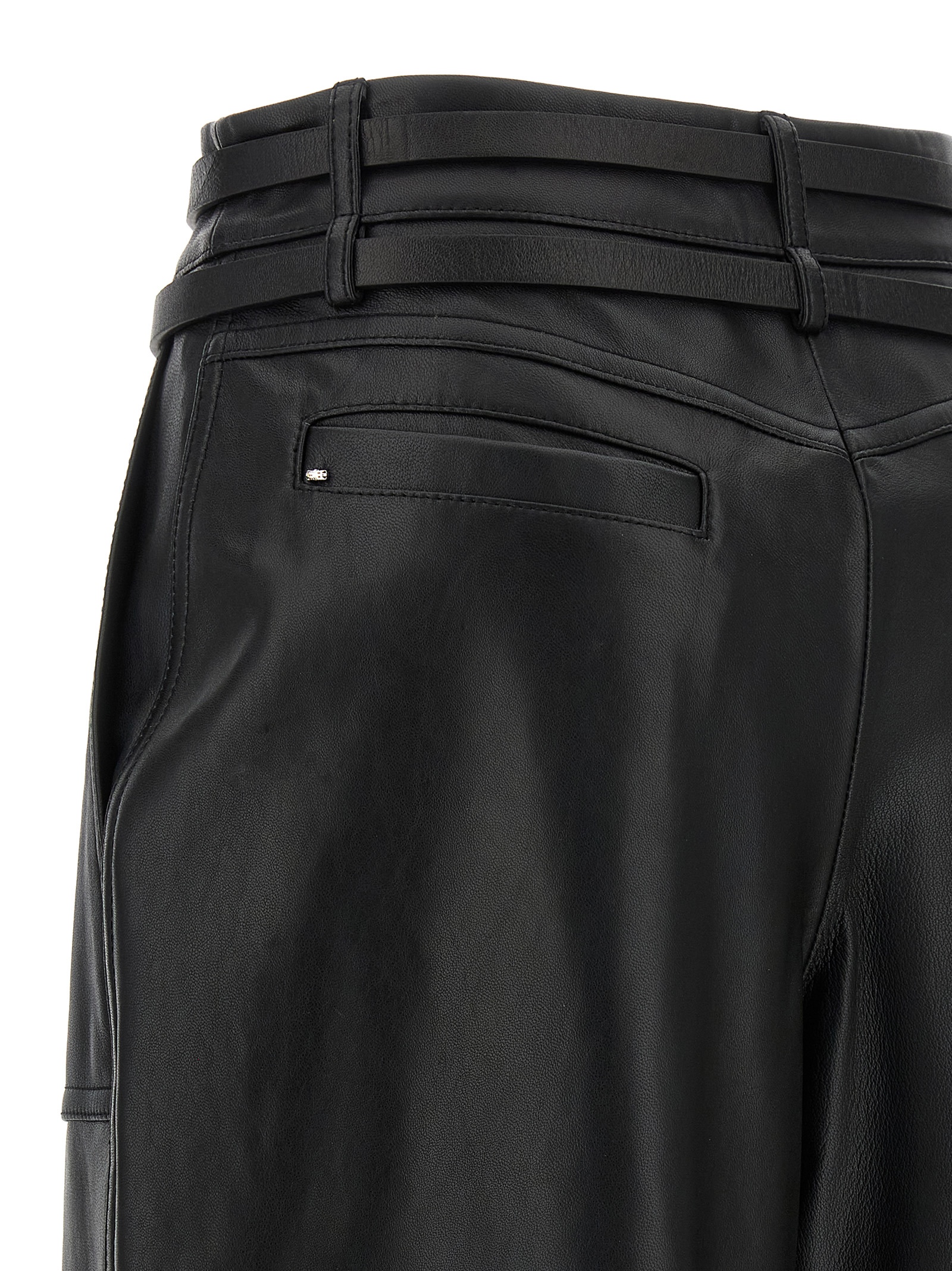 ‘Garbo’ nappa pants, workwear model with maxi square pockets and front stitching, wide leg, hook and button zip closure, pockets, lining, double-turn leather belt with removable S-shaped metal buckle.