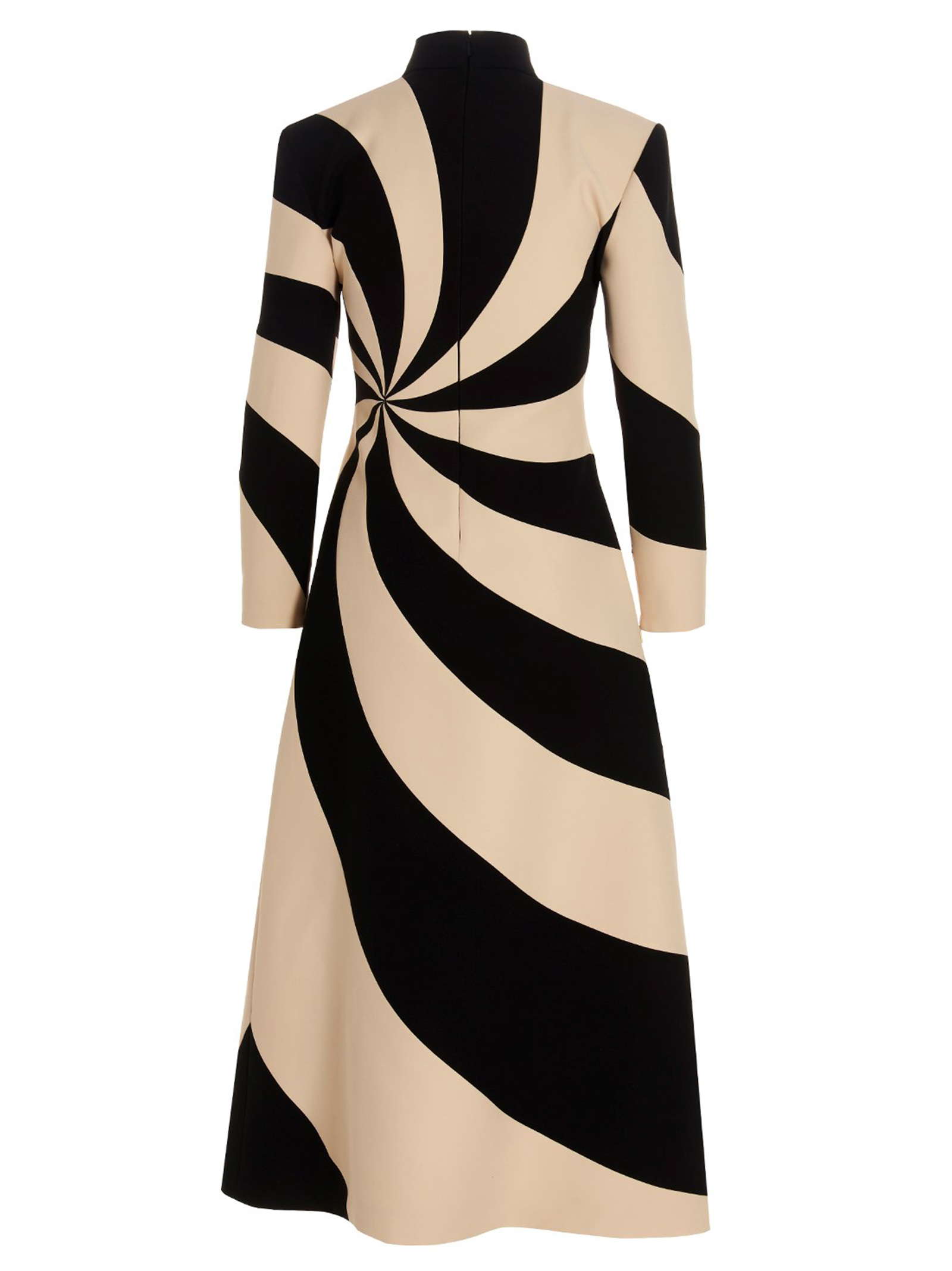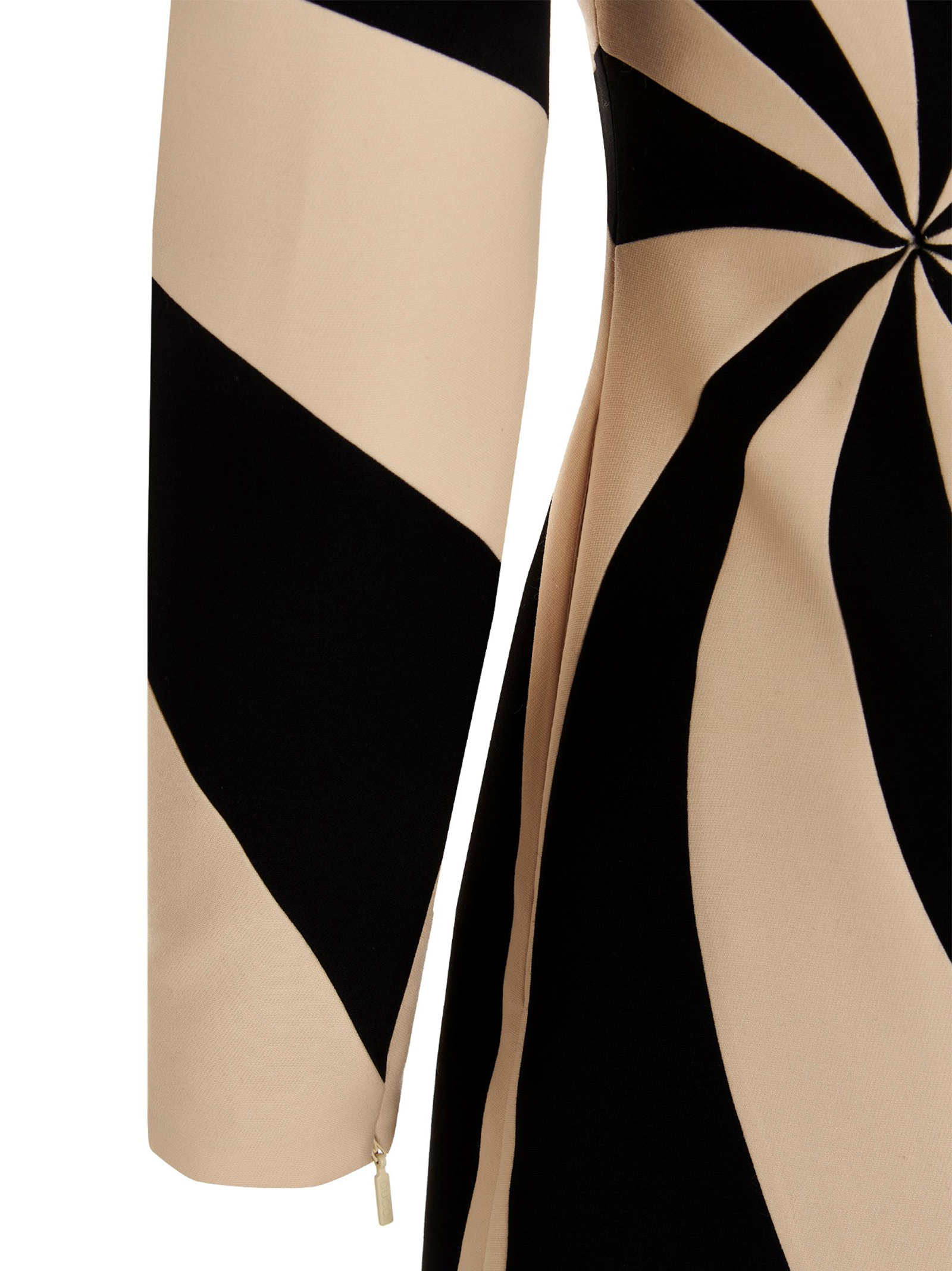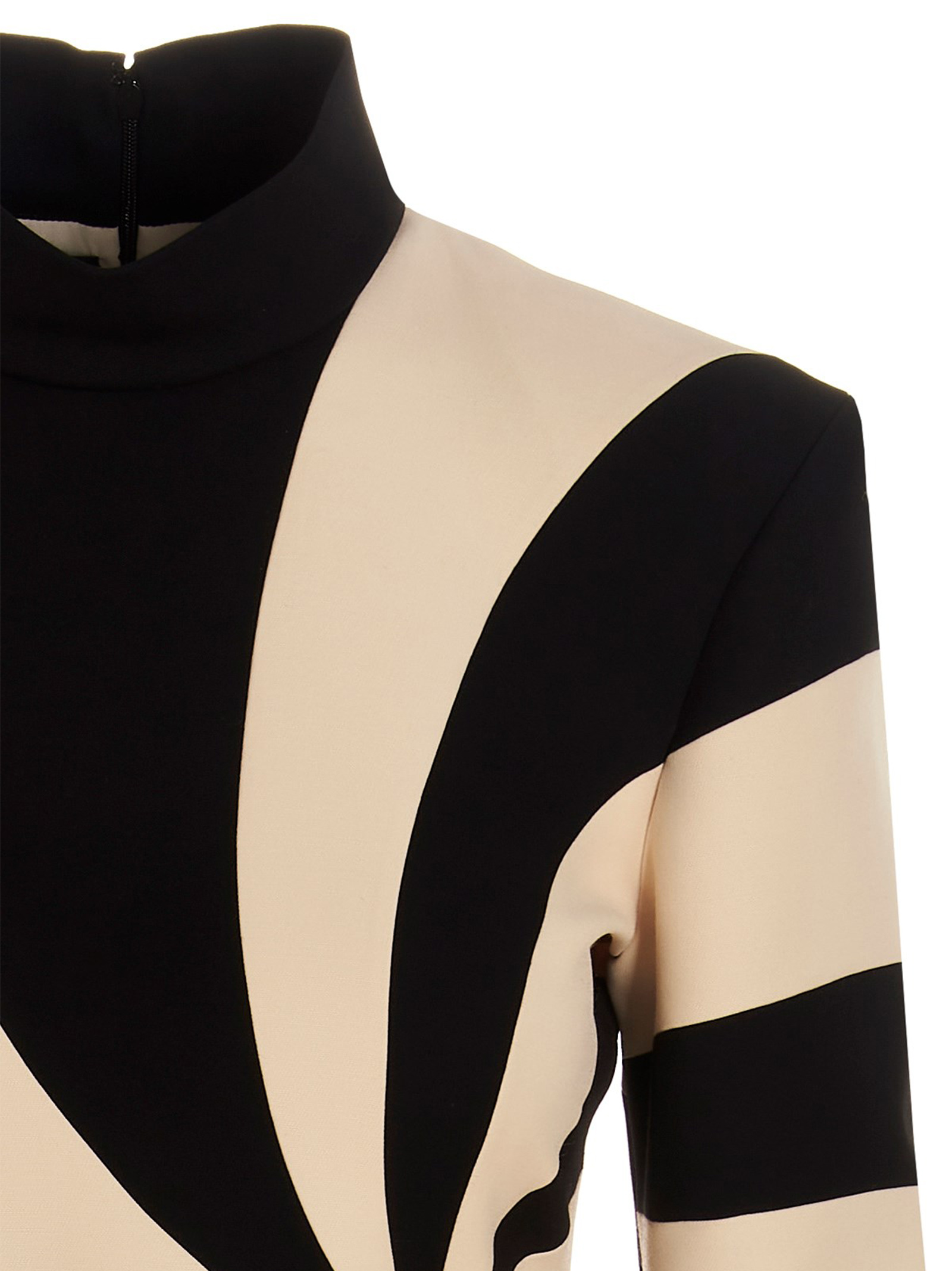 Black and ivory silk crêpe and wool dress with a geometric pattern, lining, a high neck, long sleeves and a zip closure.re.