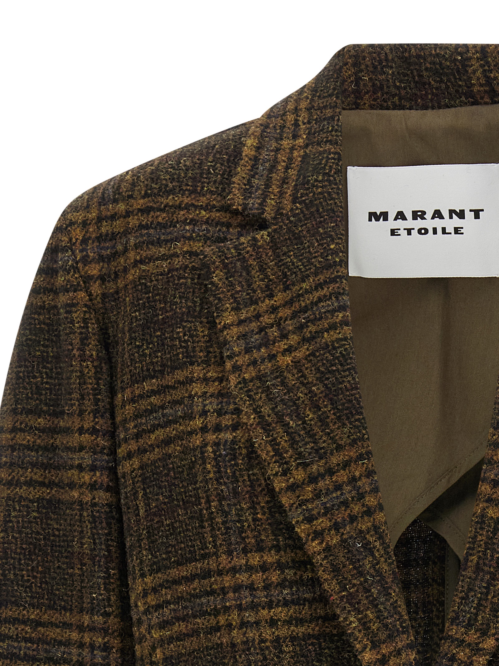 ‘Gesina’ virgin wool checked blazer jacket, single-breasted deconstructed with front button closure, mirror lapels, breast pocket, flap pockets, back split, long sleeves with dropped shoulders, half lining.