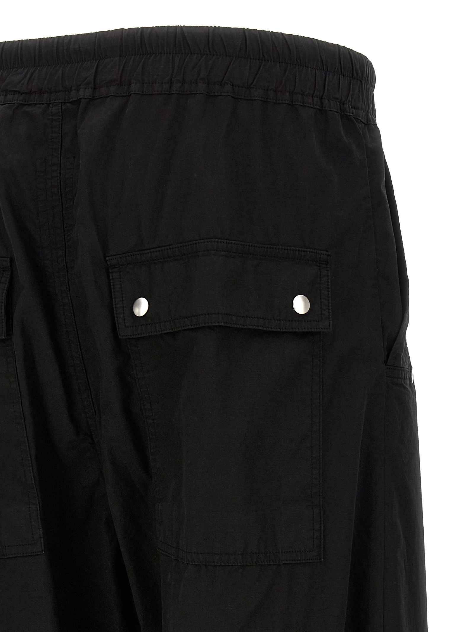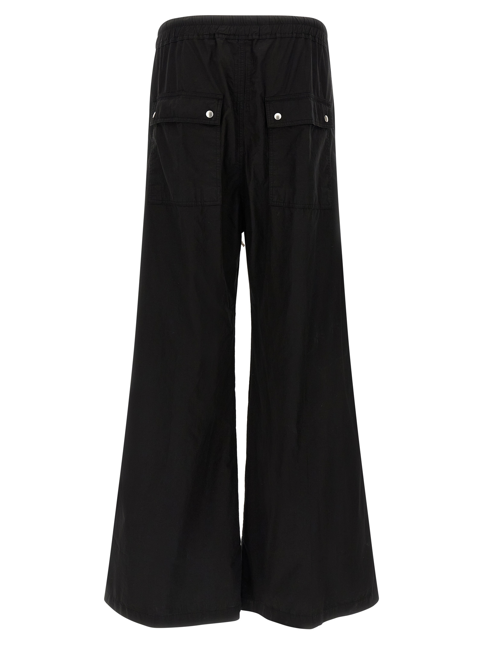‘Geth Belas’ trousers in light and crunchy cotton poplin fabric with ripstop pattern and garment dyed, low crotch, extra long wide leg, metal rivets, drawstring elastic waistband, zip flap, pockets.