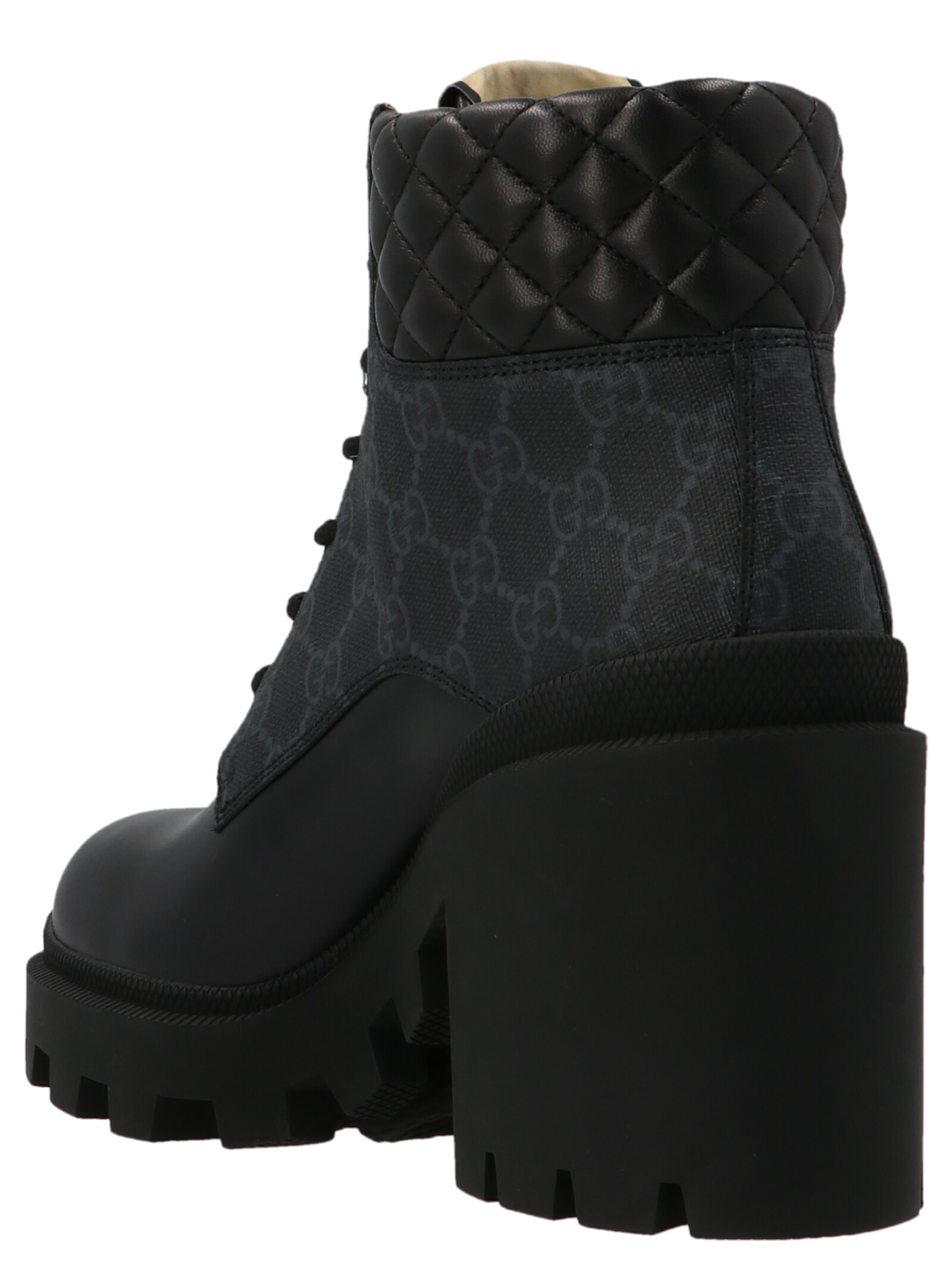 ‘GG’ magnum leather ankle boots featuring matelassé detailing and a chunky tank heel.