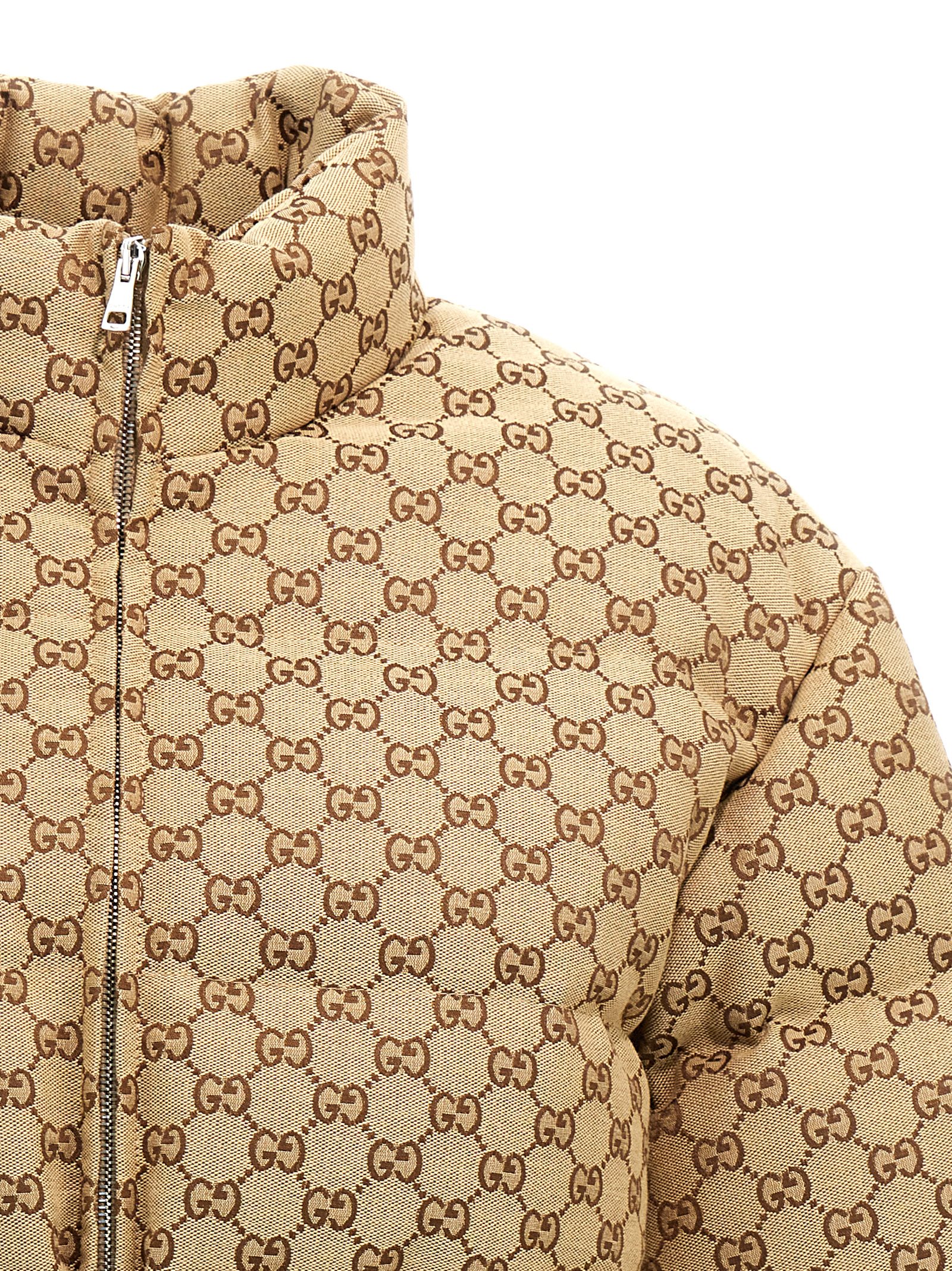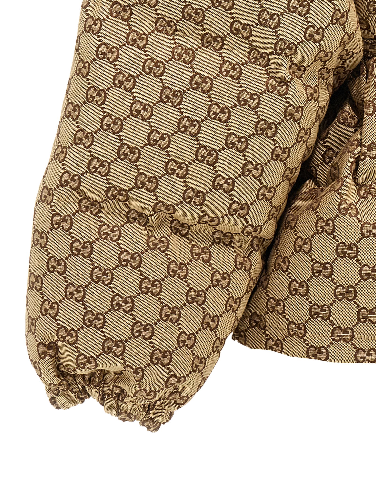 Boottito ‘GG’ fabric bomber jacket, high neck, zip closure and removable belt at the waist, pockets, long sleeves with elastic cuffs, adjustable drawstring at the hem.