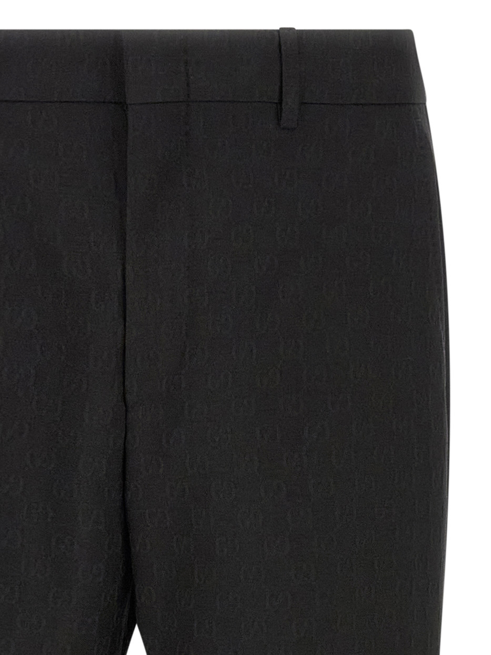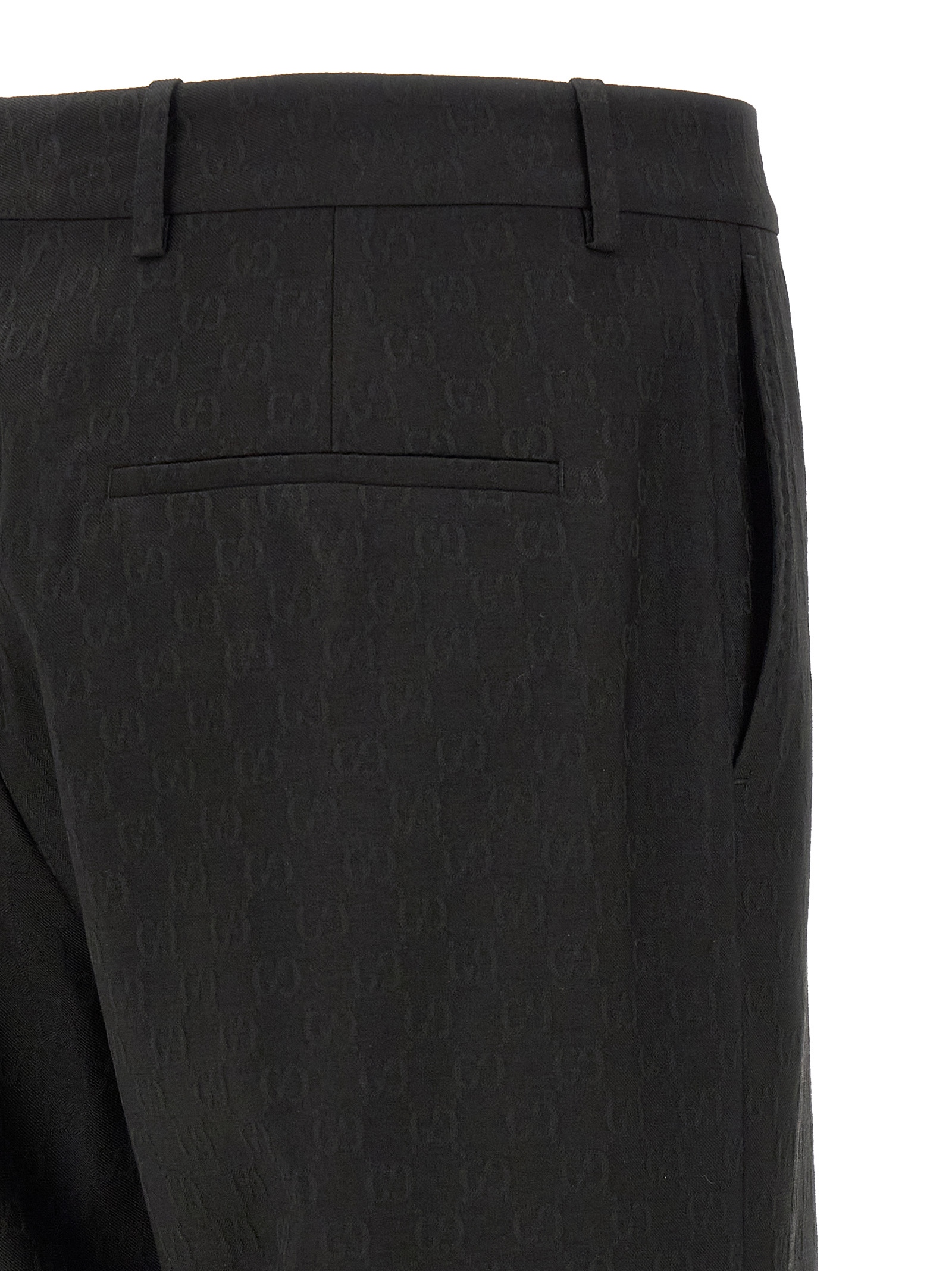 Classic formal pants in all-over ‘GG’ wool blend fabric, regular fit with straight leg and central stretched pleat, front hook and button zip closure, belt loops at the waist, opblique side pockets, back welt pockets,