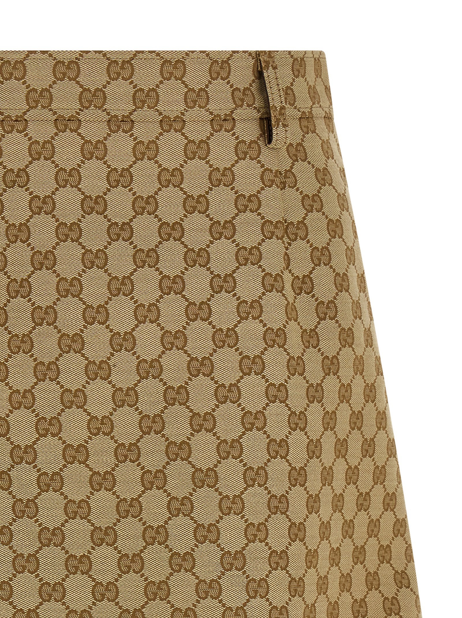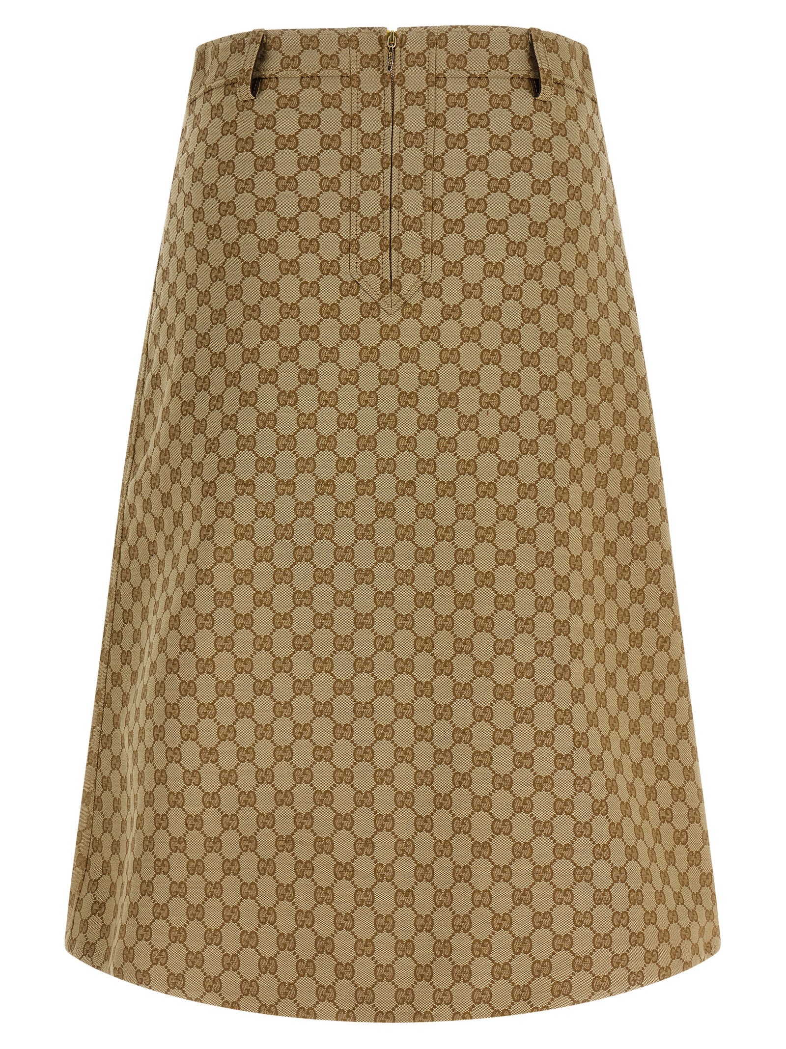 Midi skirt in thick cotton blend fabric with all-over ‘GG’ pattern, slightly flared model, belt detail covered in leather internally, front closure with half zip.