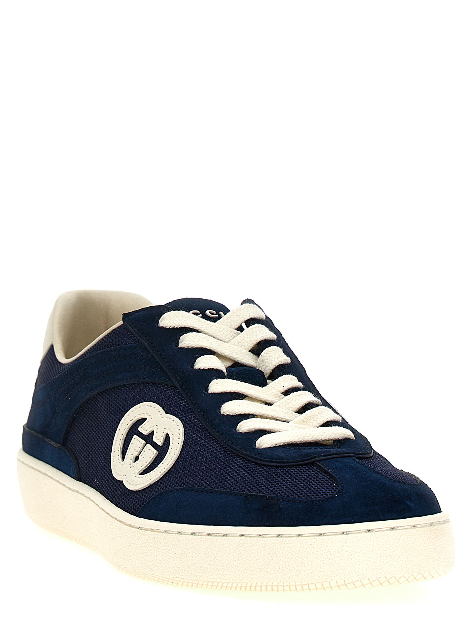 Suede and fabric sneakers, side ‘GG’ logo, laces closure, rubber sole.