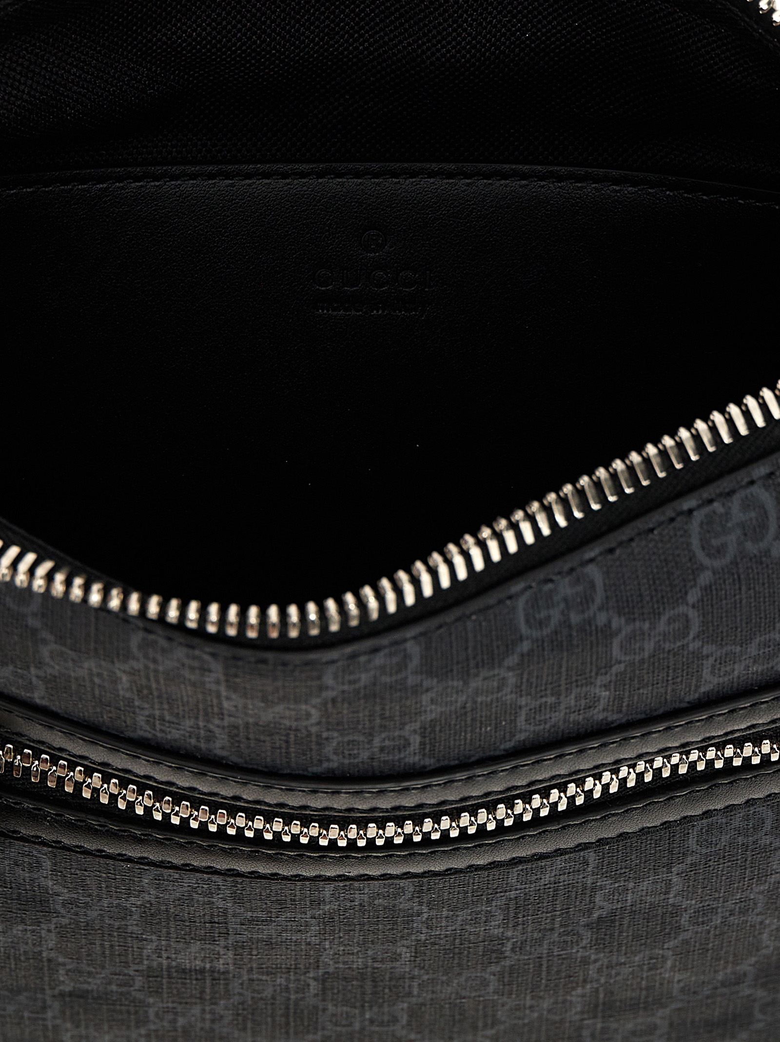 ‘GG Supreme’ fabric shoulder strap, leather details, zip closure, adjustable web ribbon shoulder strap.