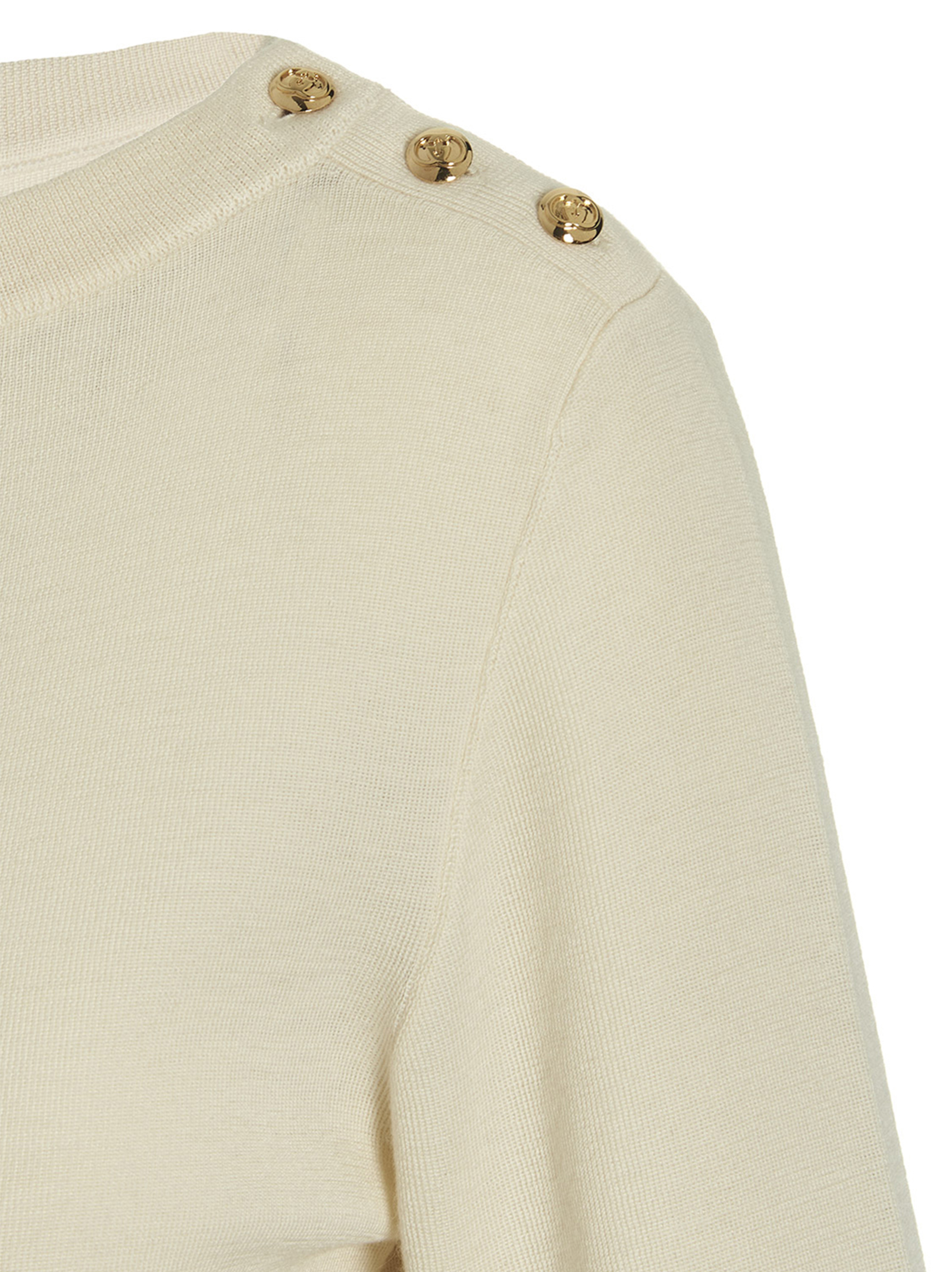 Extrafine cashmere sweater with gold ‘GG’ buttons on the shoulders, a crew neck and long sleeves.