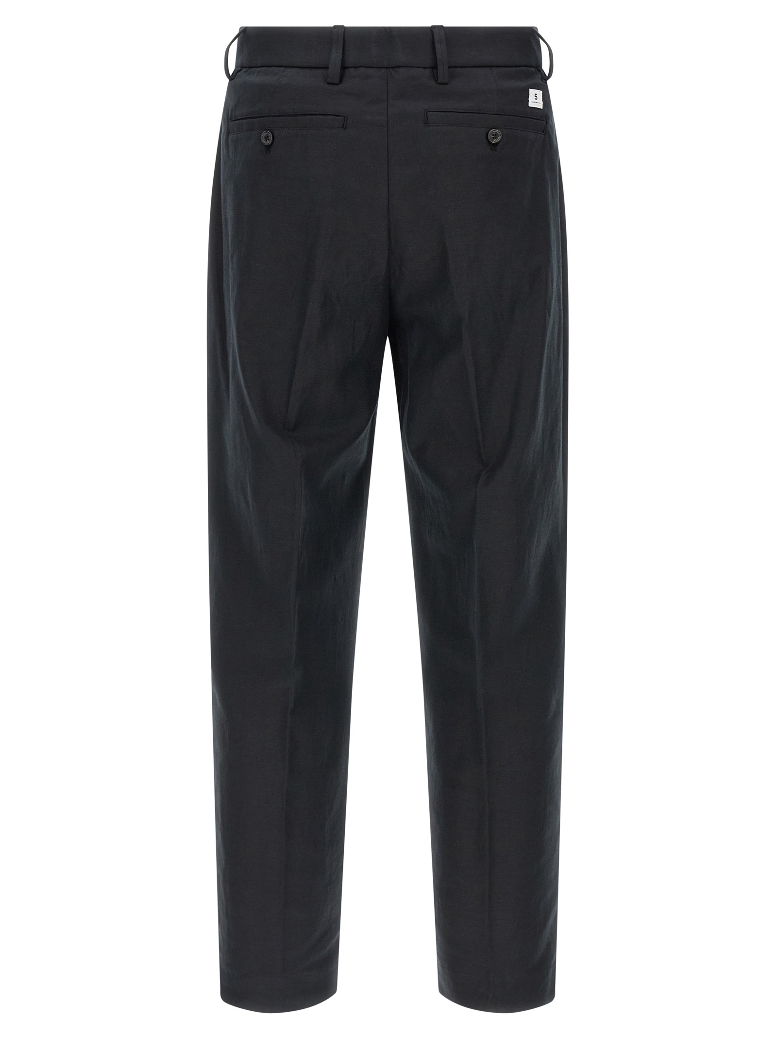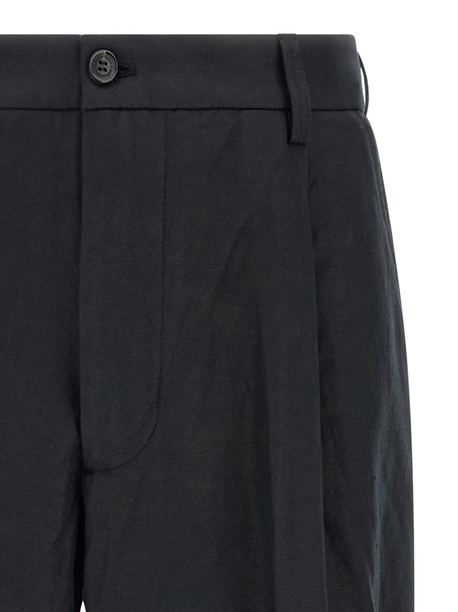 ‘Gin’ slightly stretch linen and cotton blend pants with wide leg style with front pleats, front zip and button closure, side welt pockets and back welt pockets with button, logo patch detail.