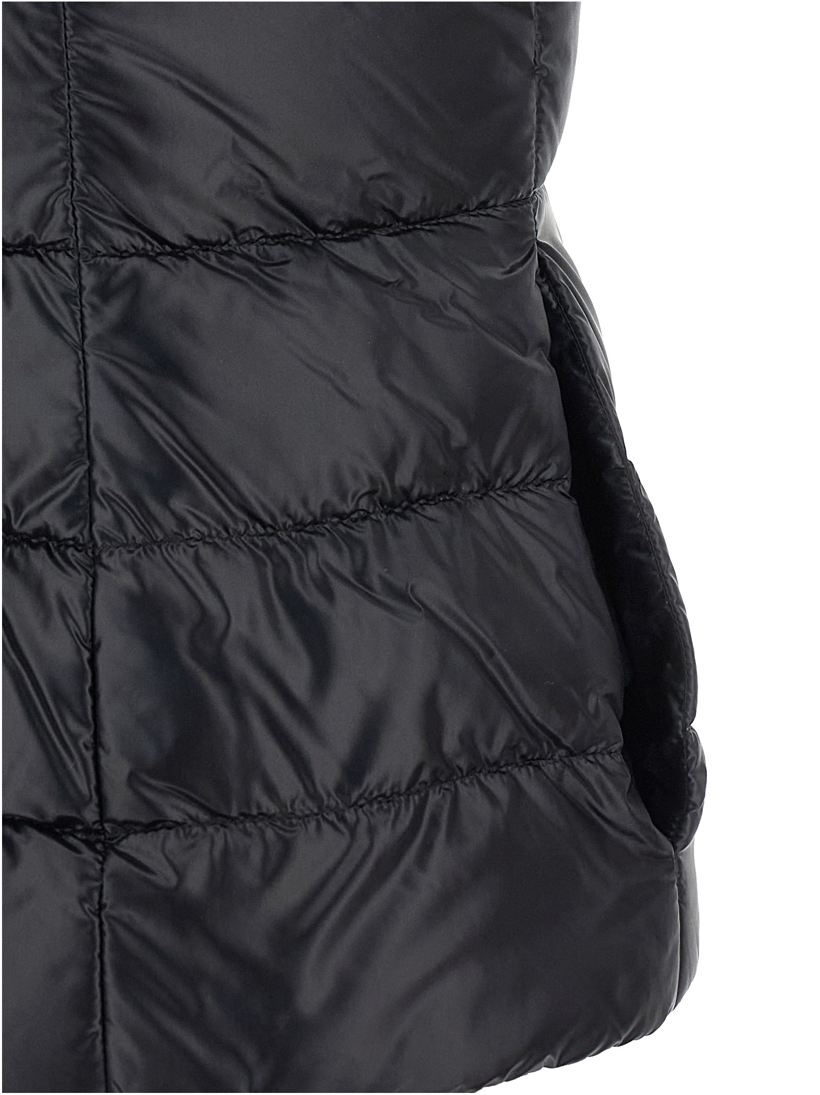 ‘Giulia’ ultralight 200 g quilted nylon vest with goose down padding, high neck, front zip and snap button closure, pockets.